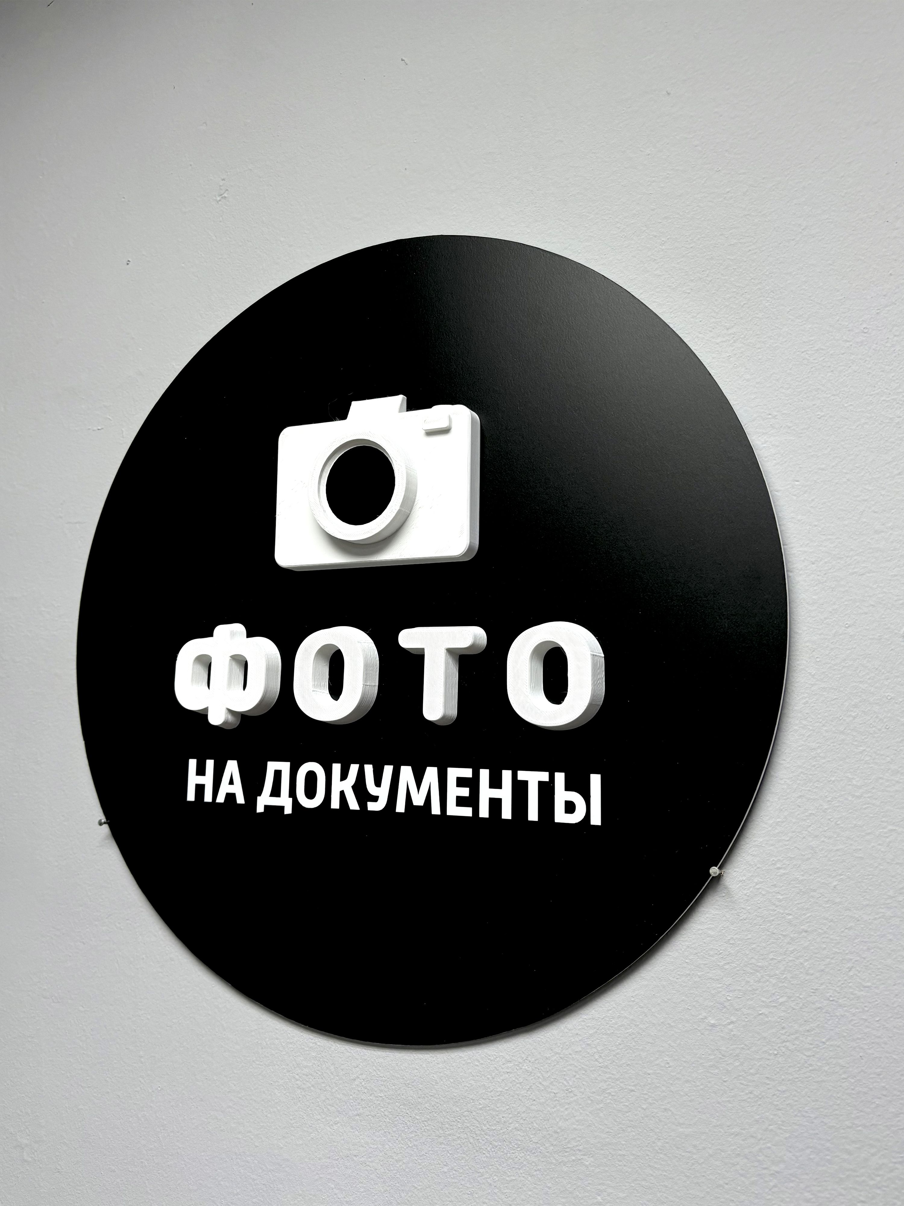 Представляем вашему вниманию уникальную и стильную 3D вывеску "Фото на документы"! Эта круглая несветовая вывеска станет настоящим украшением вашего бизнеса и привлечет внимание клиентов.
