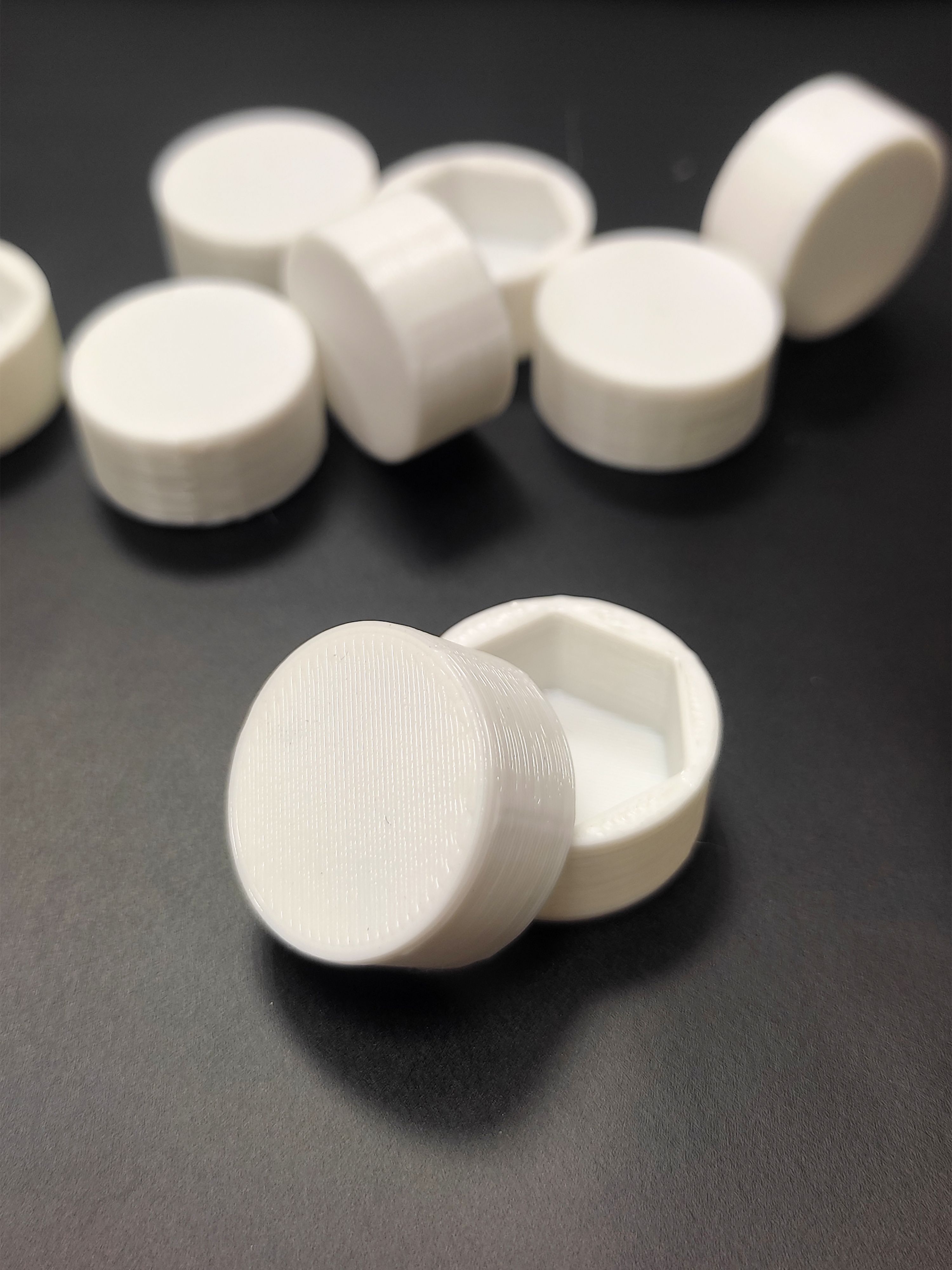 - Высокая долговечность: Благодаря свойствам PET-G, колпачки устойчивы к механическим повреждениям, истиранию и деформации.