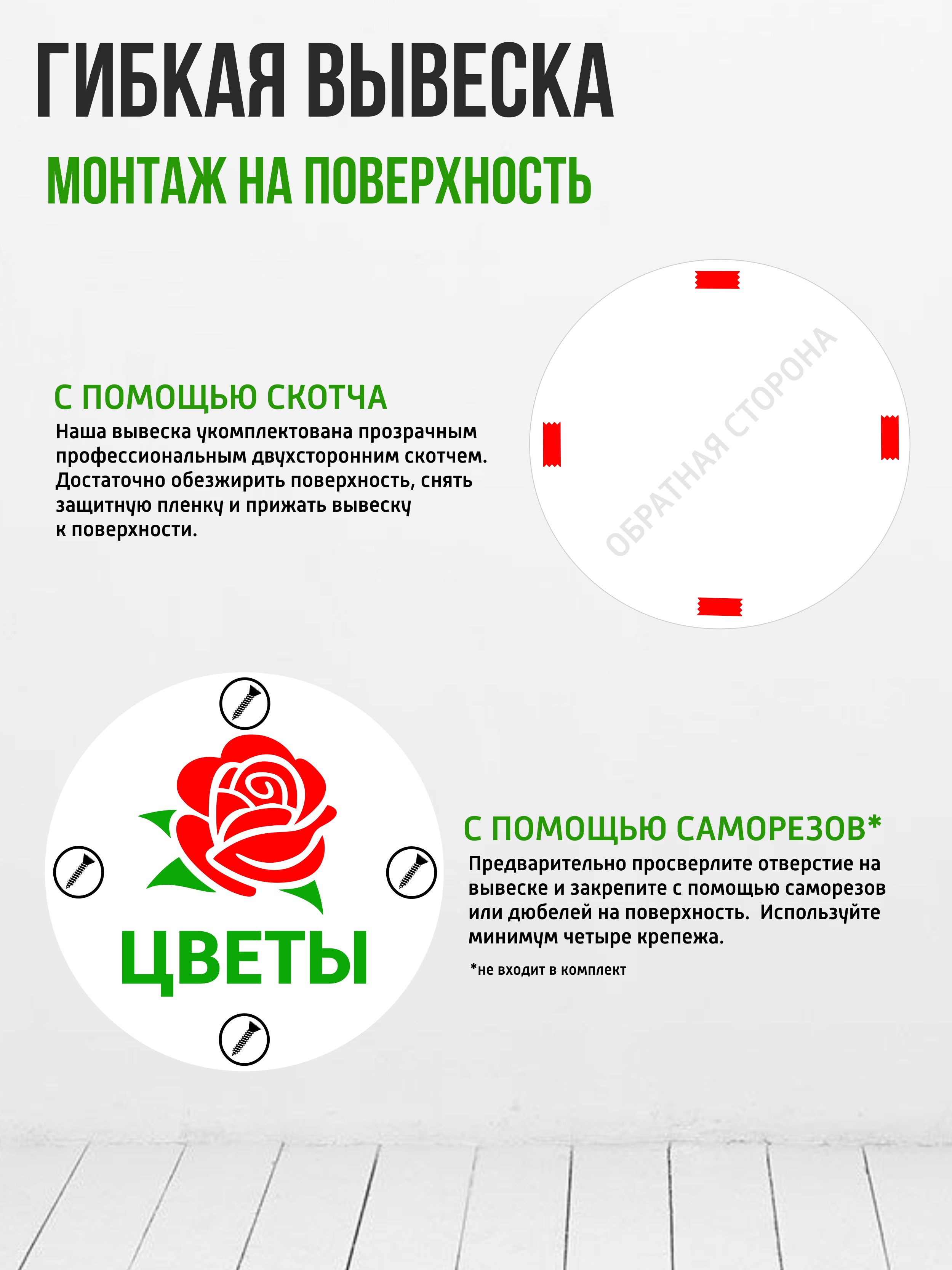 Гибкая несветовая вывеска "Цветы", полипропилен 1мм, для цветочного магазина