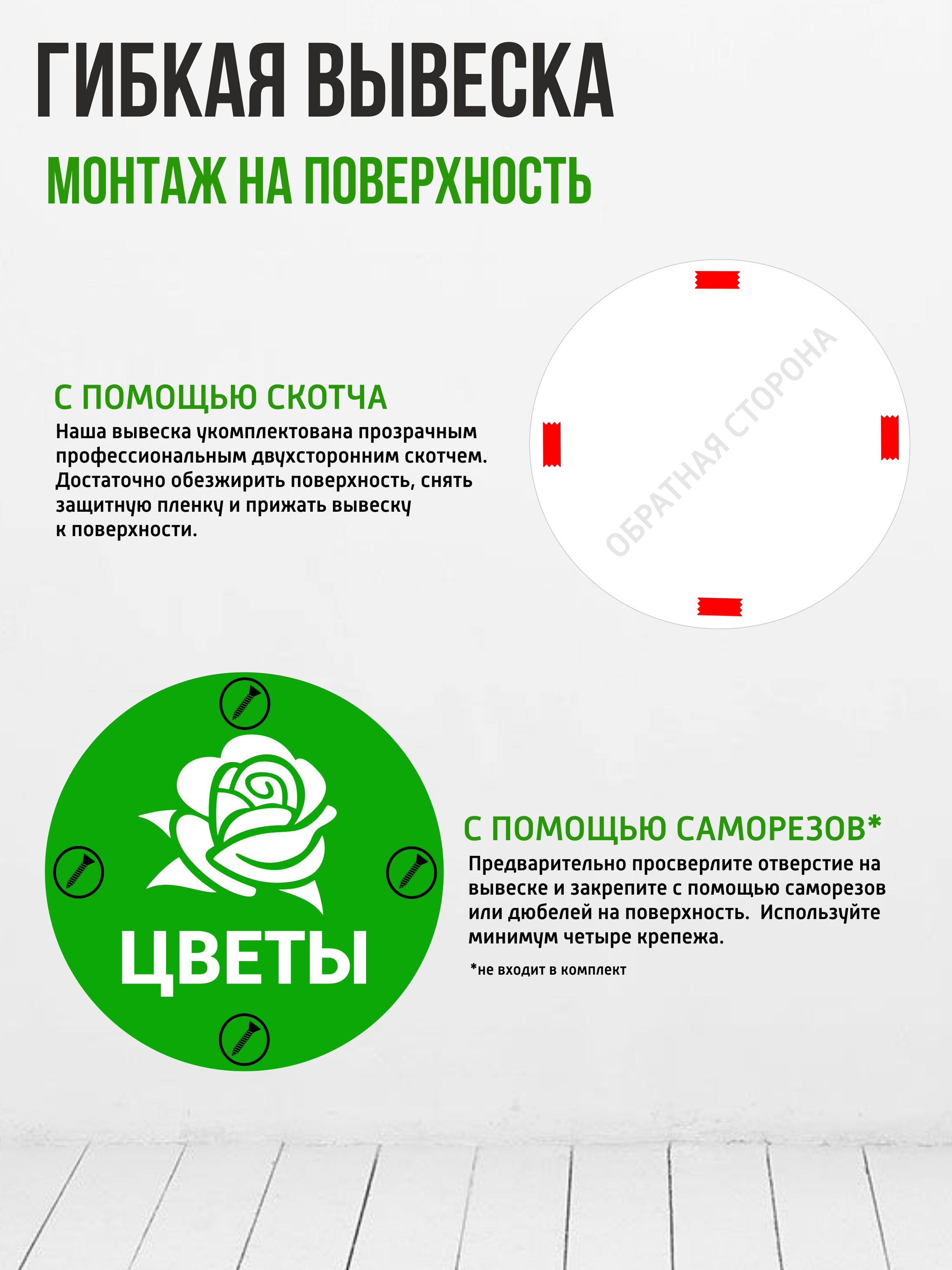 Гибкая несветовая вывеска "Цветы", полипропилен 1мм, для цветочного магазина