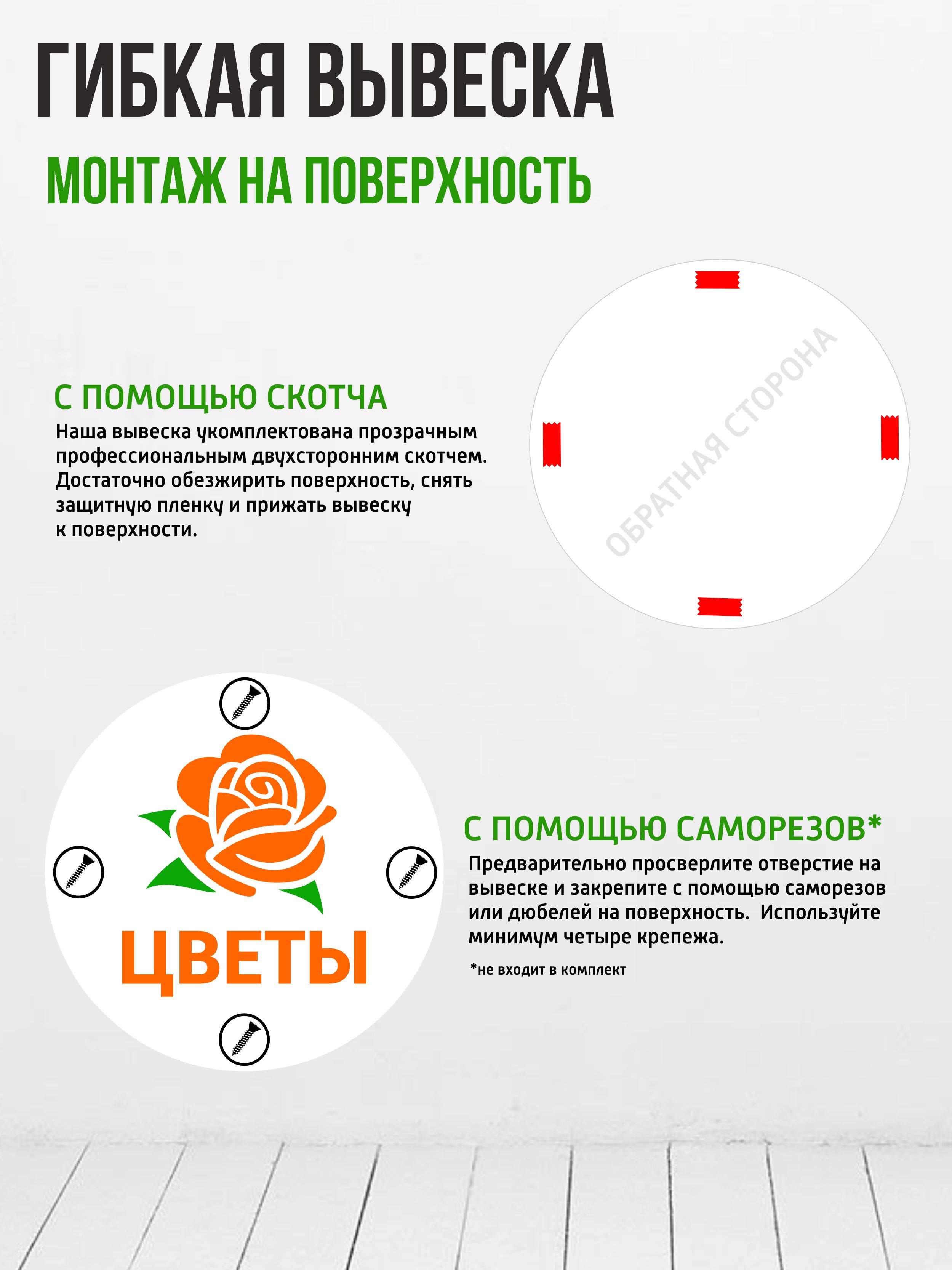 Гибкая несветовая вывеска "Цветы", полипропилен 1мм, для цветочного магазина