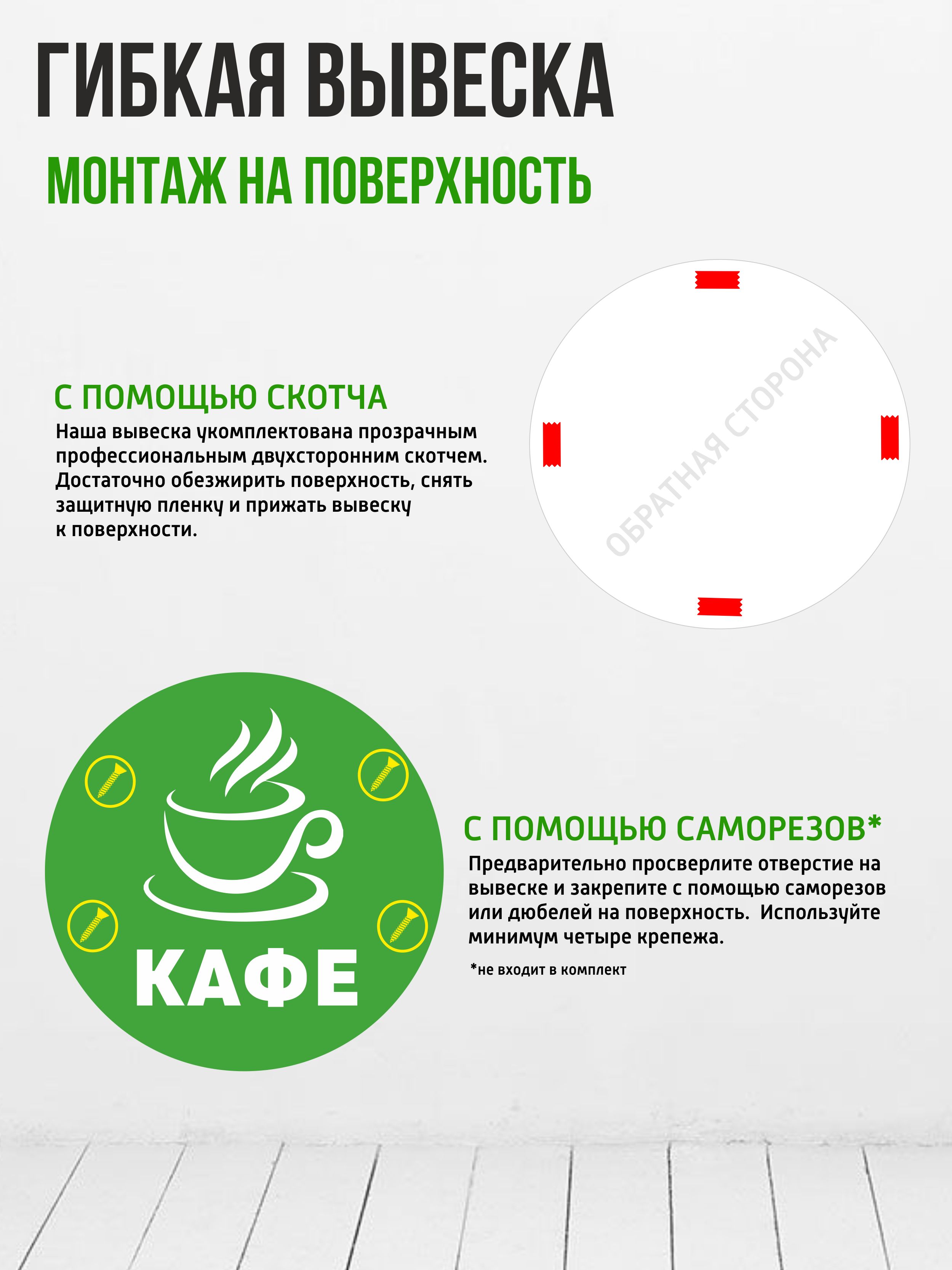 Гибкие несветовые вывески и указатели созданы из прочного полипропилена, а изображение наносится методом аппликации цветной виниловой пленки.