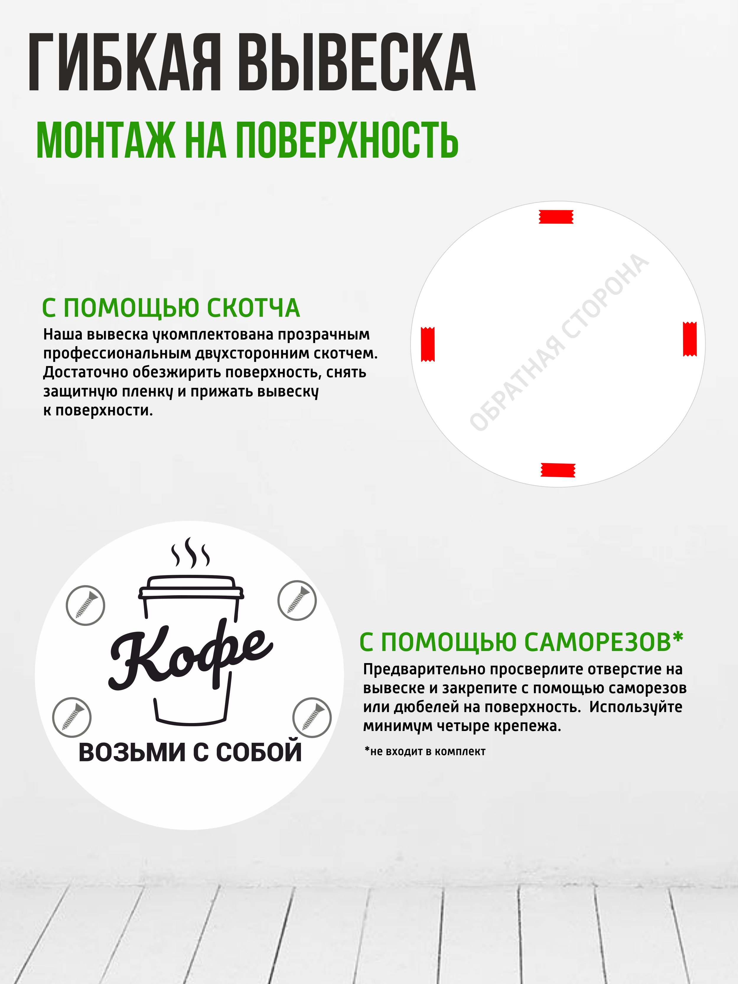 Гибкая несветовая вывеска "Кофе с собой", полипропилен 1мм, для кофейни или автомата
