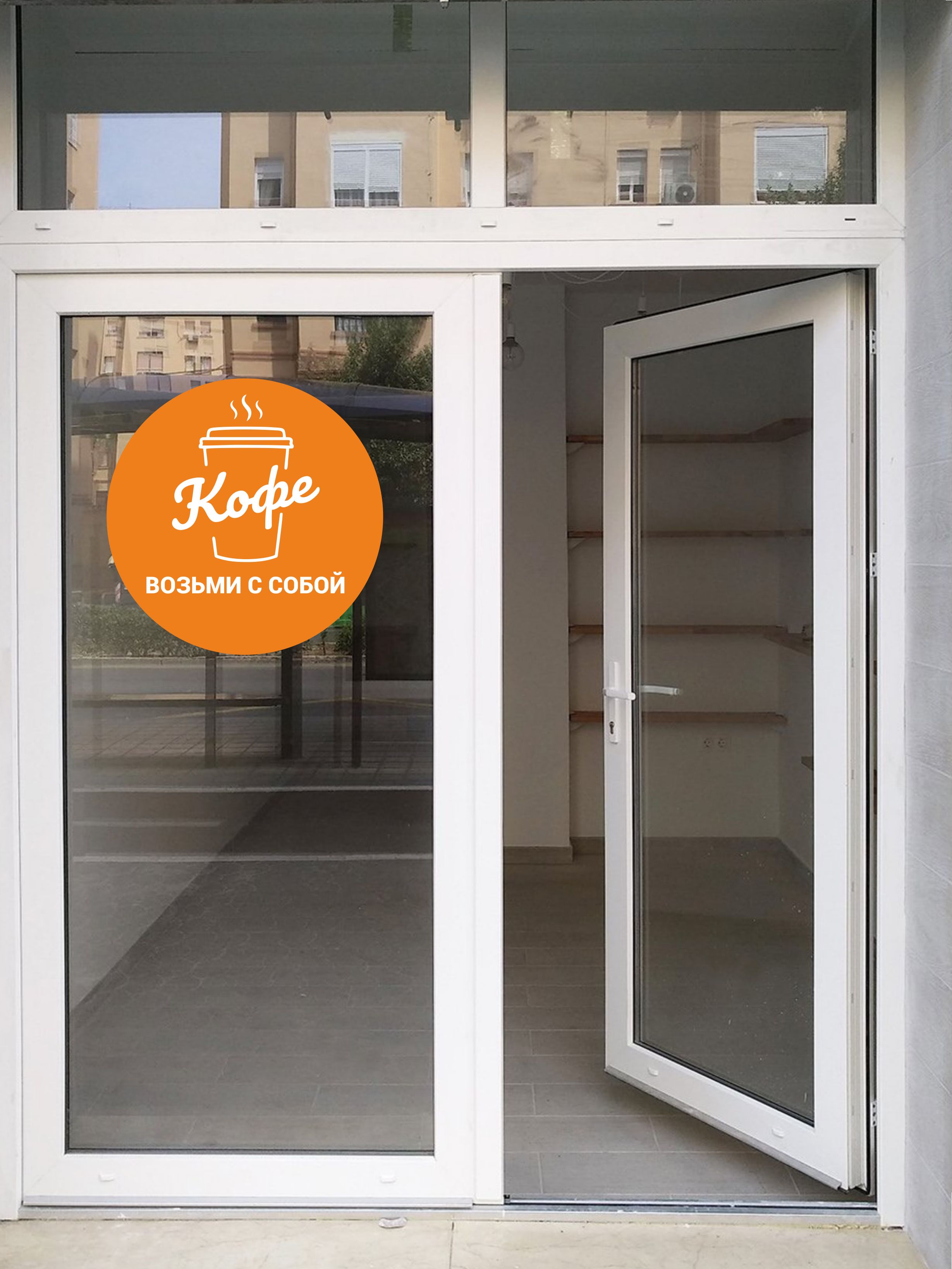 Главная / Каталог продукции / Вывески и оформление торговых точек / Гибкая несветовая вывеска "Кофе с собой", полипропилен 1мм, для кофейни или автомата