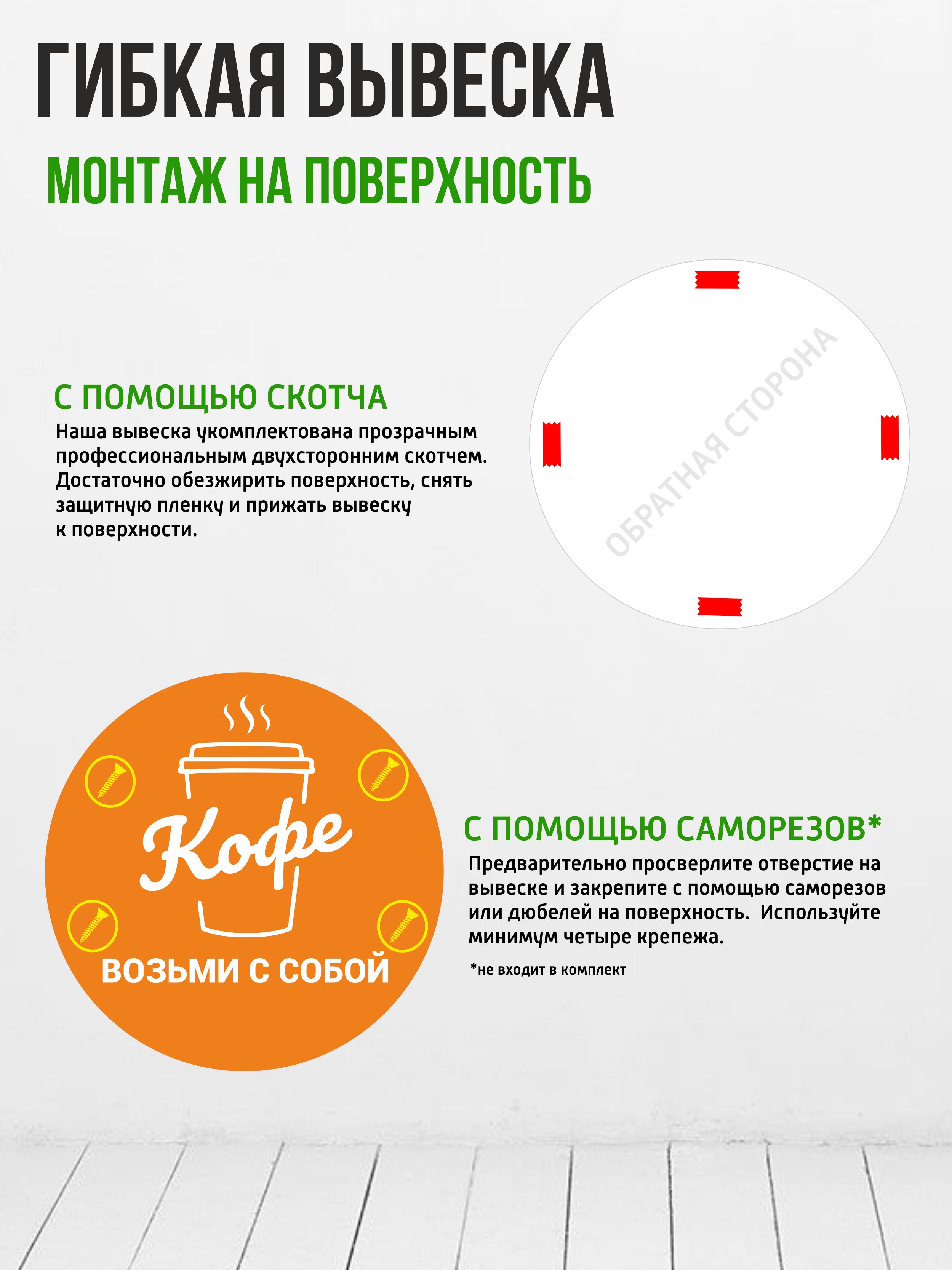 Гибкая несветовая вывеска "Кофе с собой", полипропилен 1мм, для кофейни или автомата