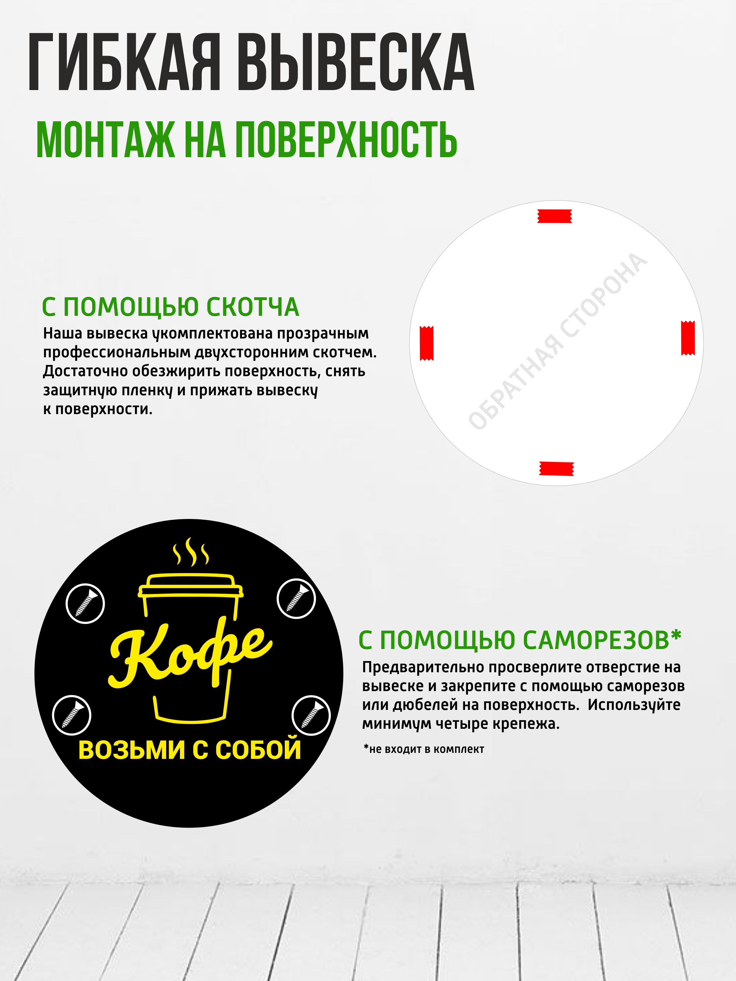 Гибкая несветовая вывеска "Кофе с собой", полипропилен 1мм, для кофейни или автомата