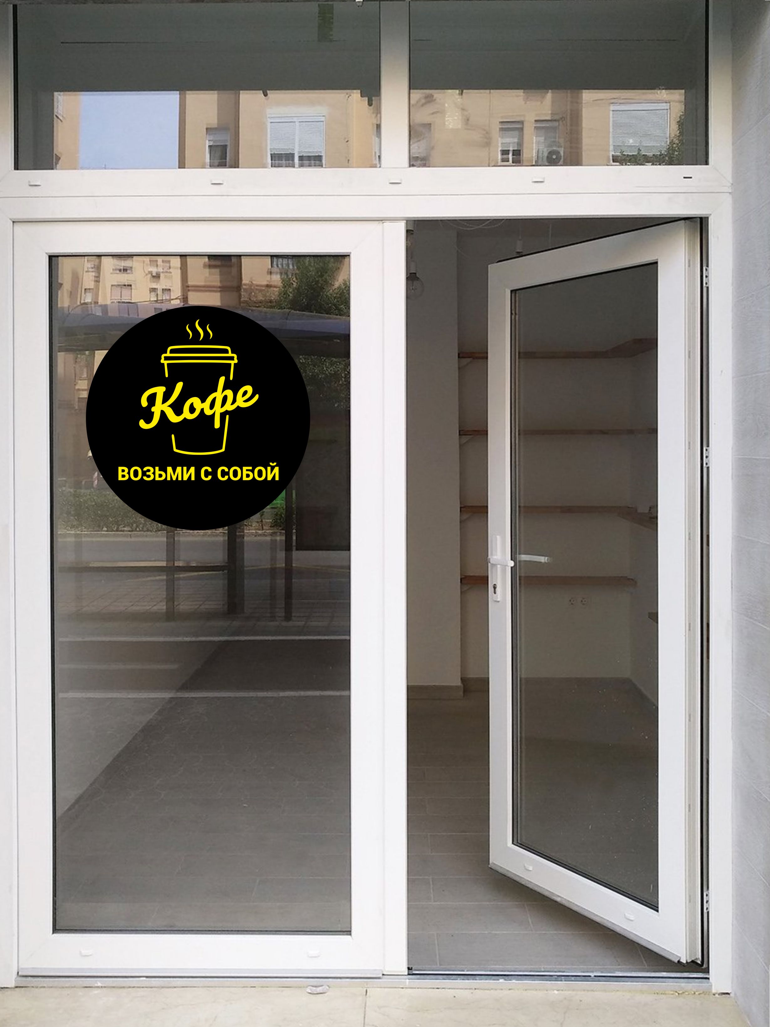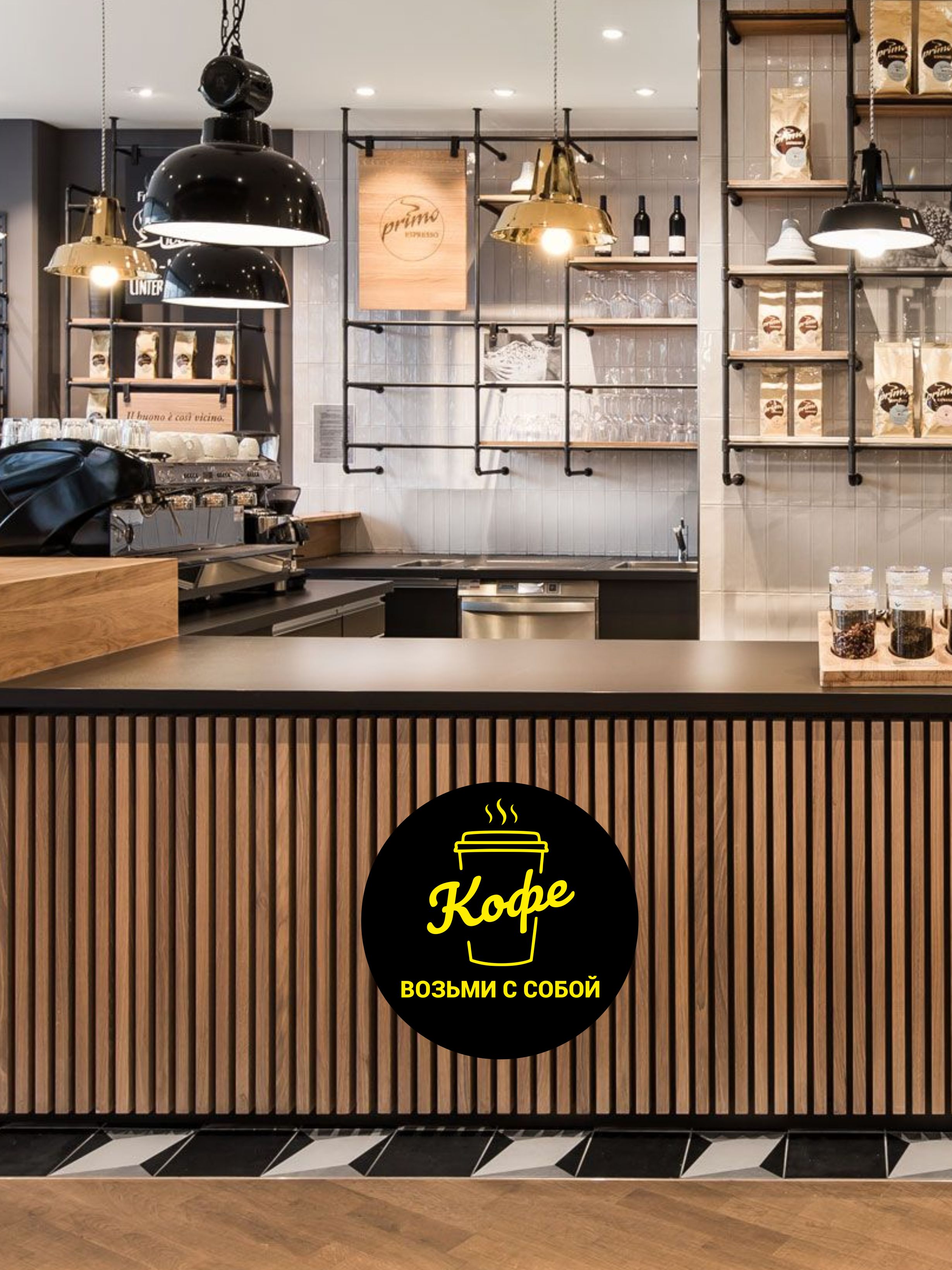 Главная / Каталог продукции / Вывески и оформление торговых точек / Гибкая несветовая вывеска "Кофе с собой", полипропилен 1мм, для кофейни или автомата