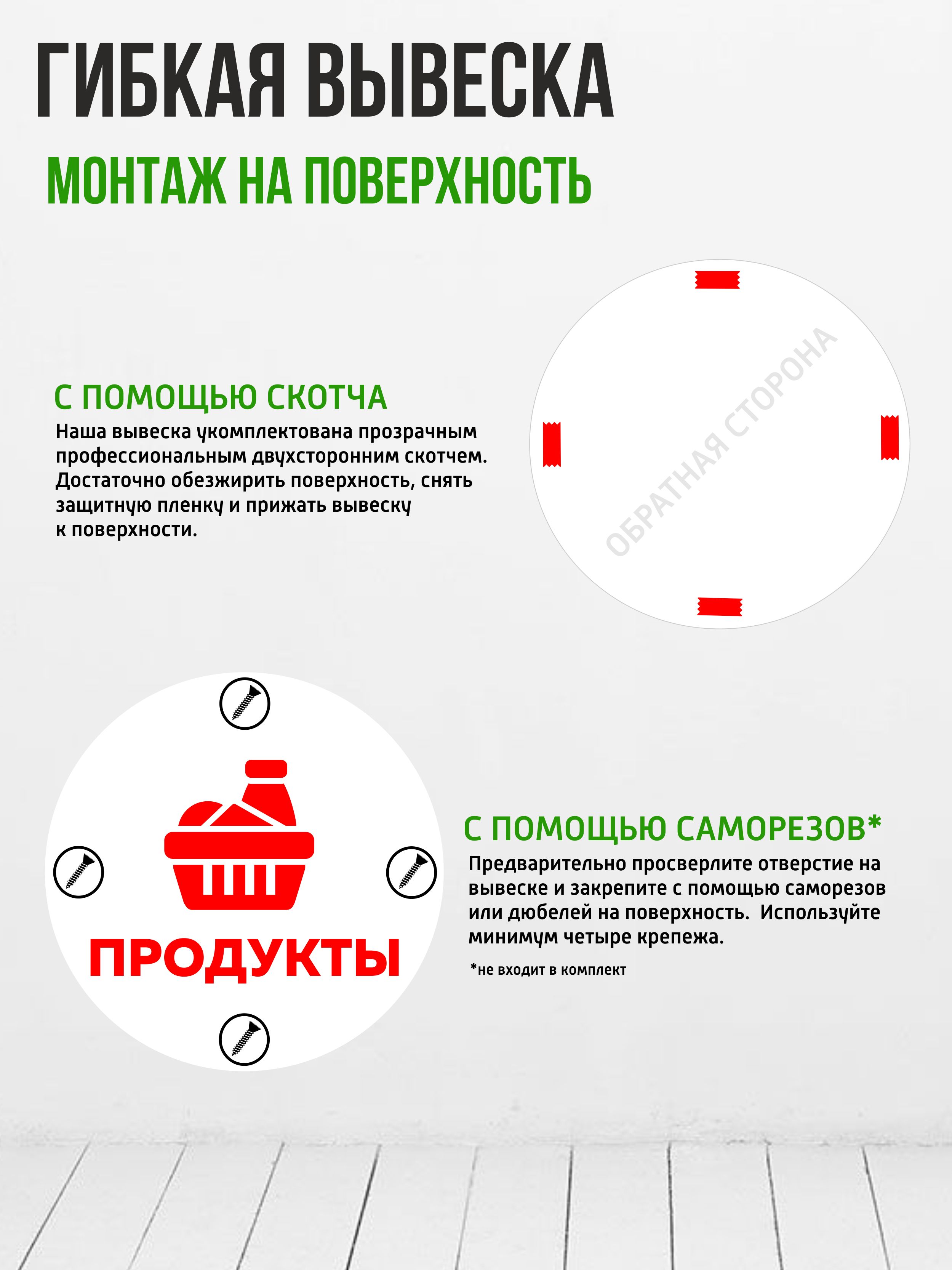 Гибкая несветовая вывеска "Продукты", полипропилен 1мм, для магазина или витрины