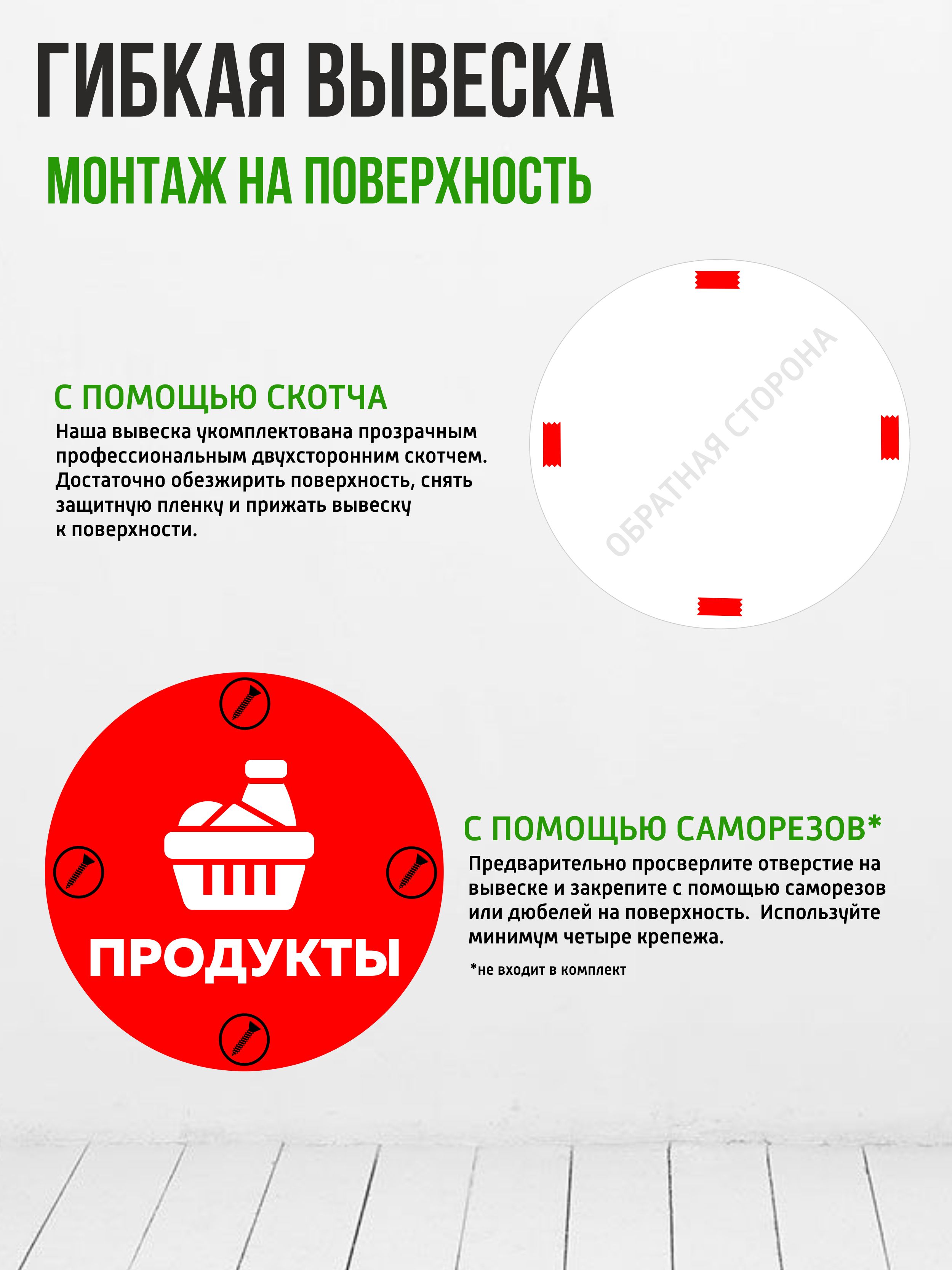 Гибкая несветовая вывеска "Продукты", полипропилен 1мм, для магазина или витрины
