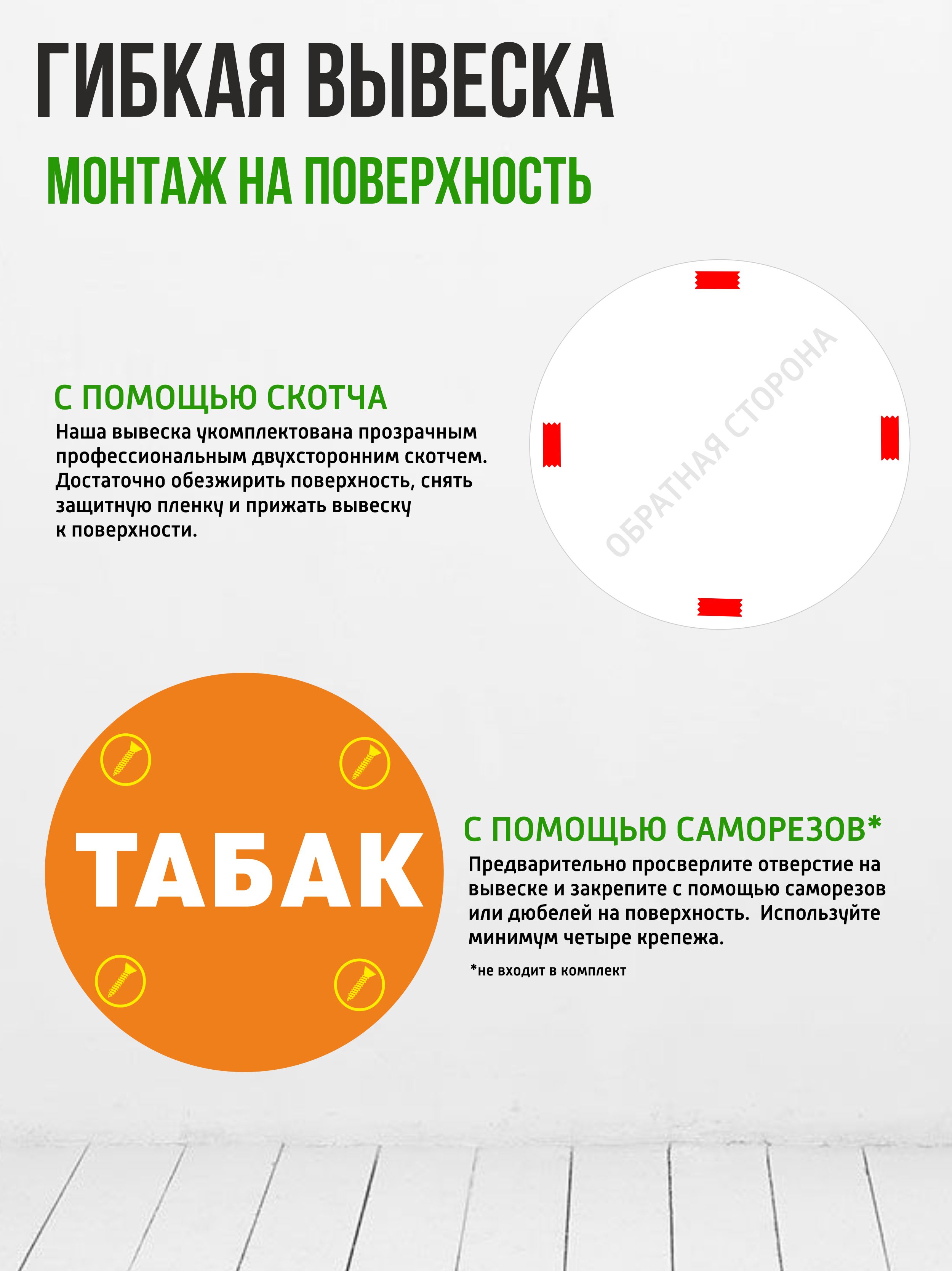 Гибкая несветовая вывеска "Табак", полипропилен 1мм, для магазина табачных изделий