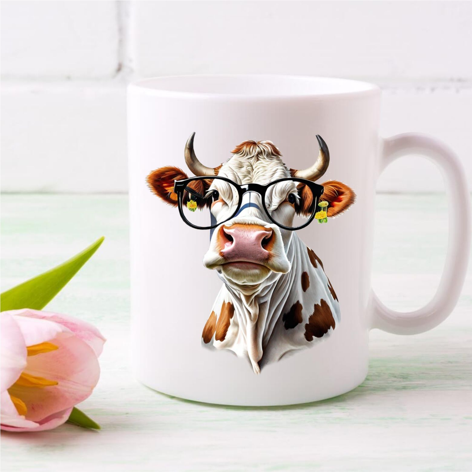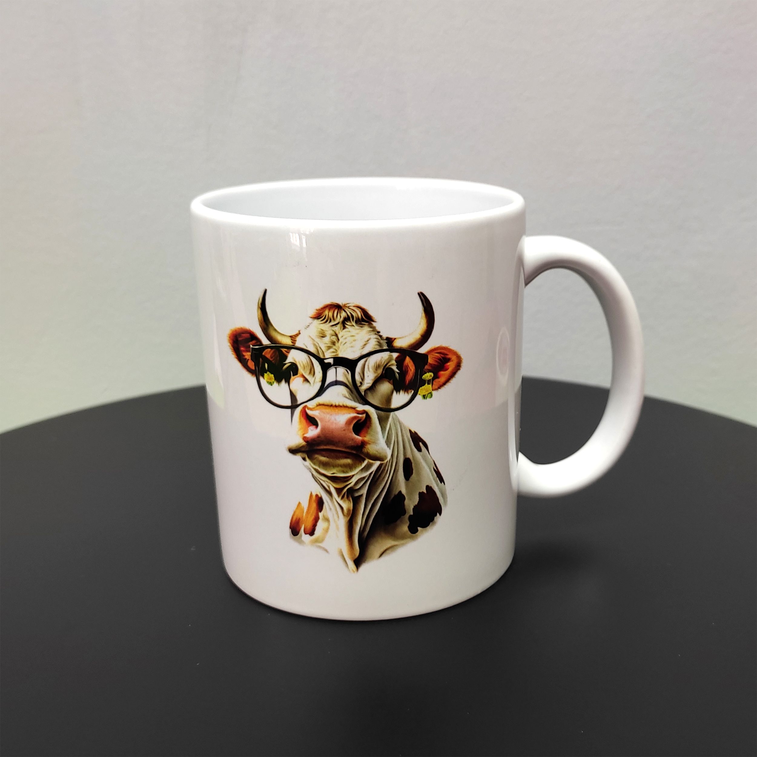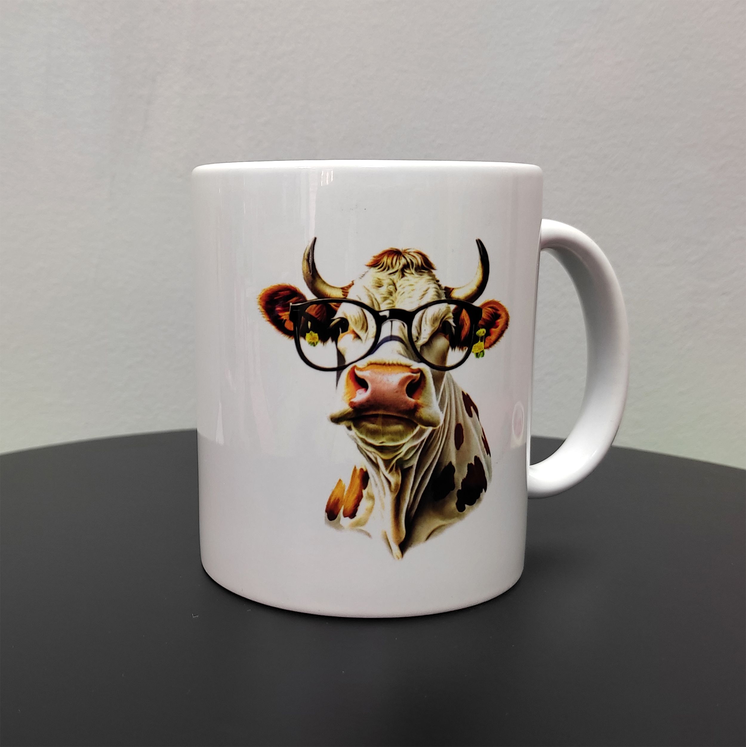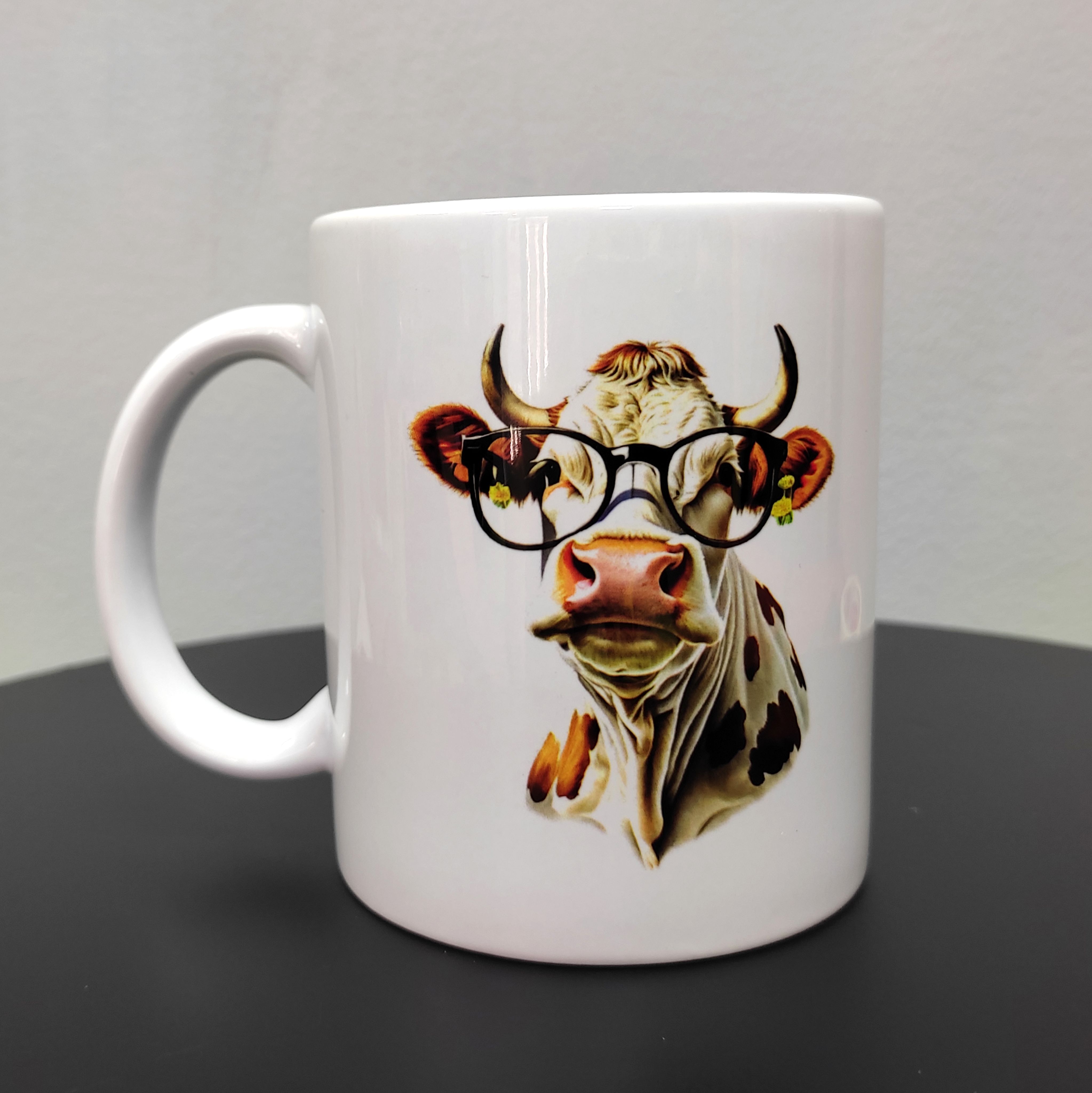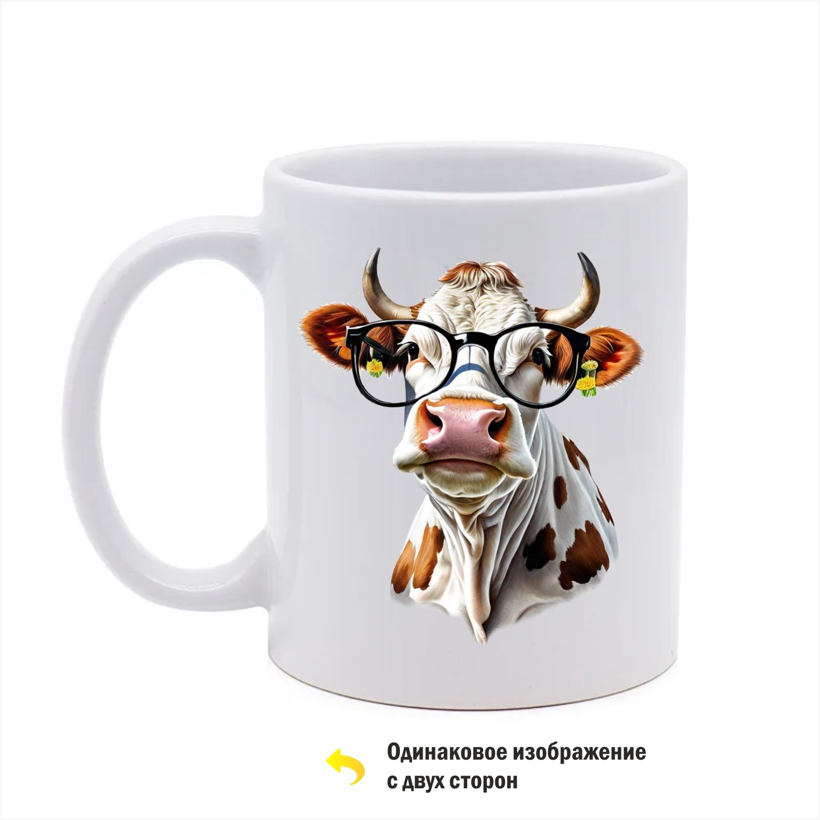 Главная / Каталог продукции / Кружки с принтами / Кружка с рисунком "Модная корова в очках", 330мл, белая керамика
