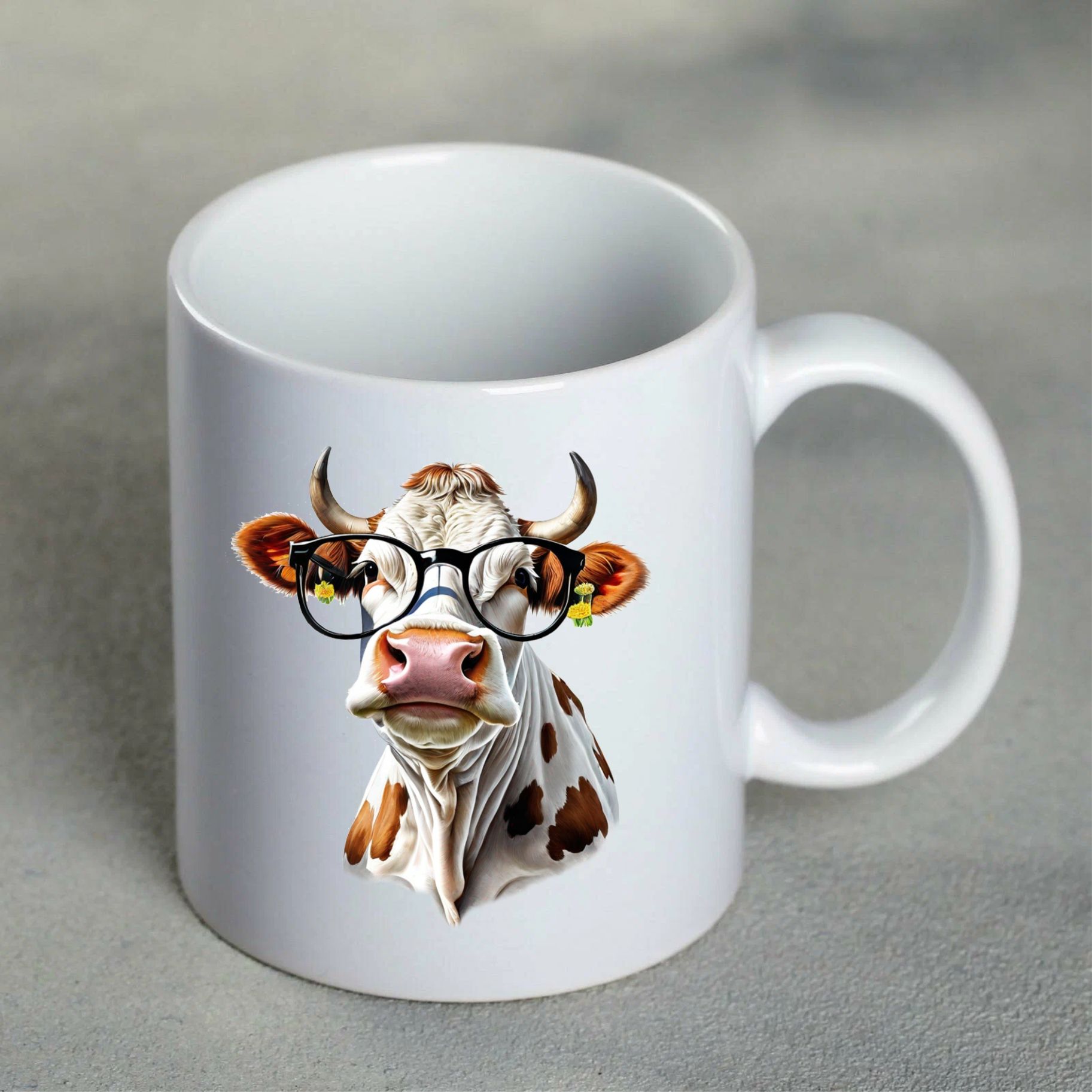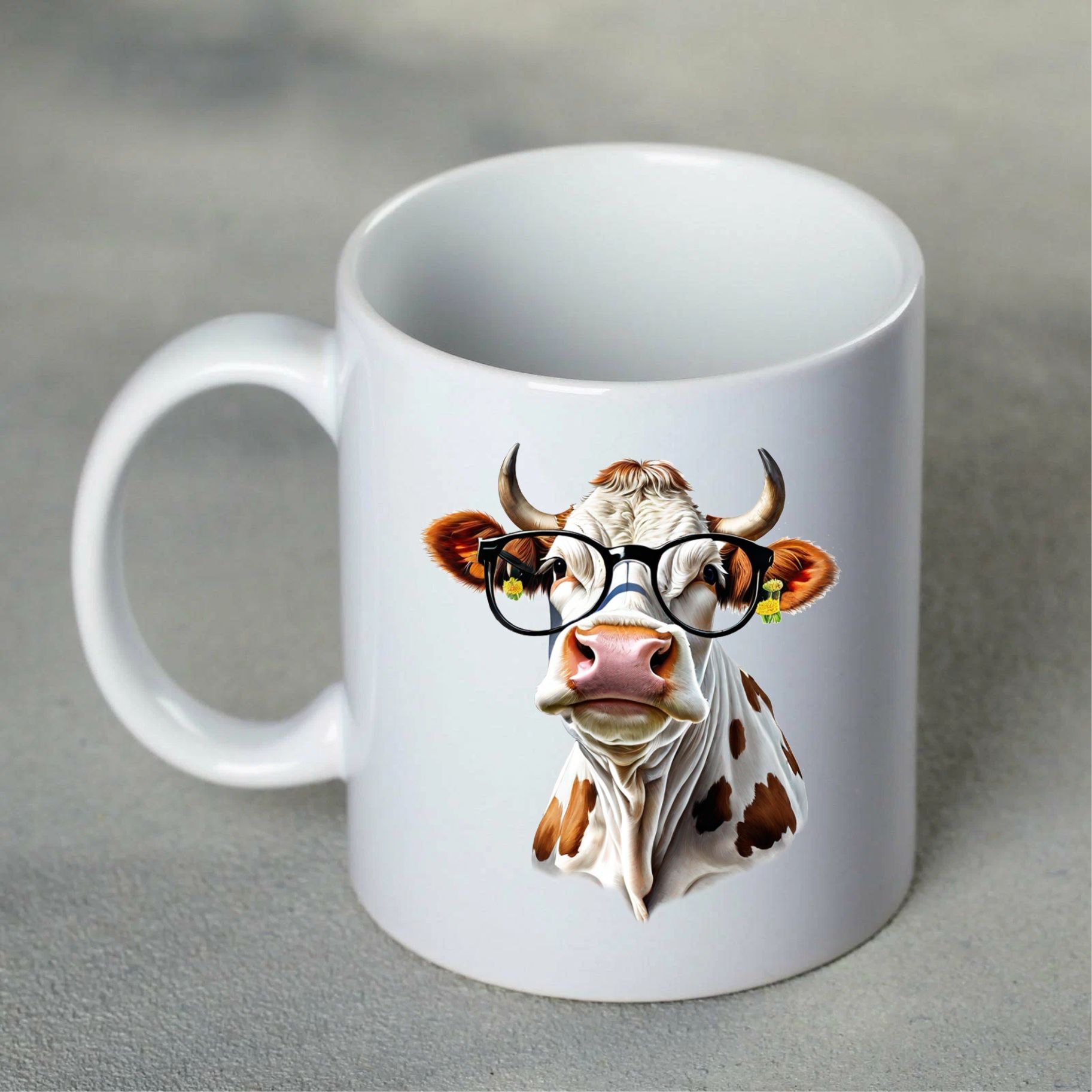 Кружка с рисунком "Модная корова в очках", 330мл, белая керамика