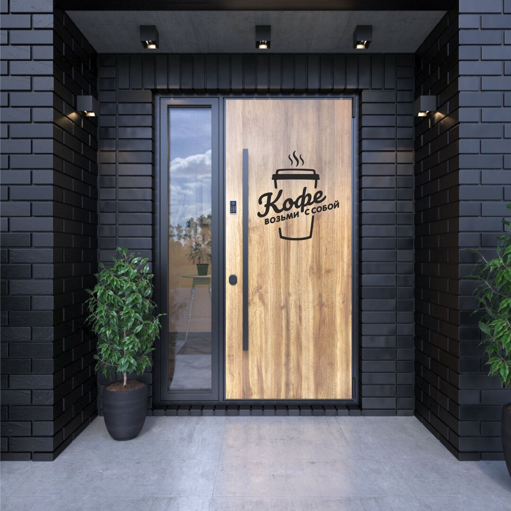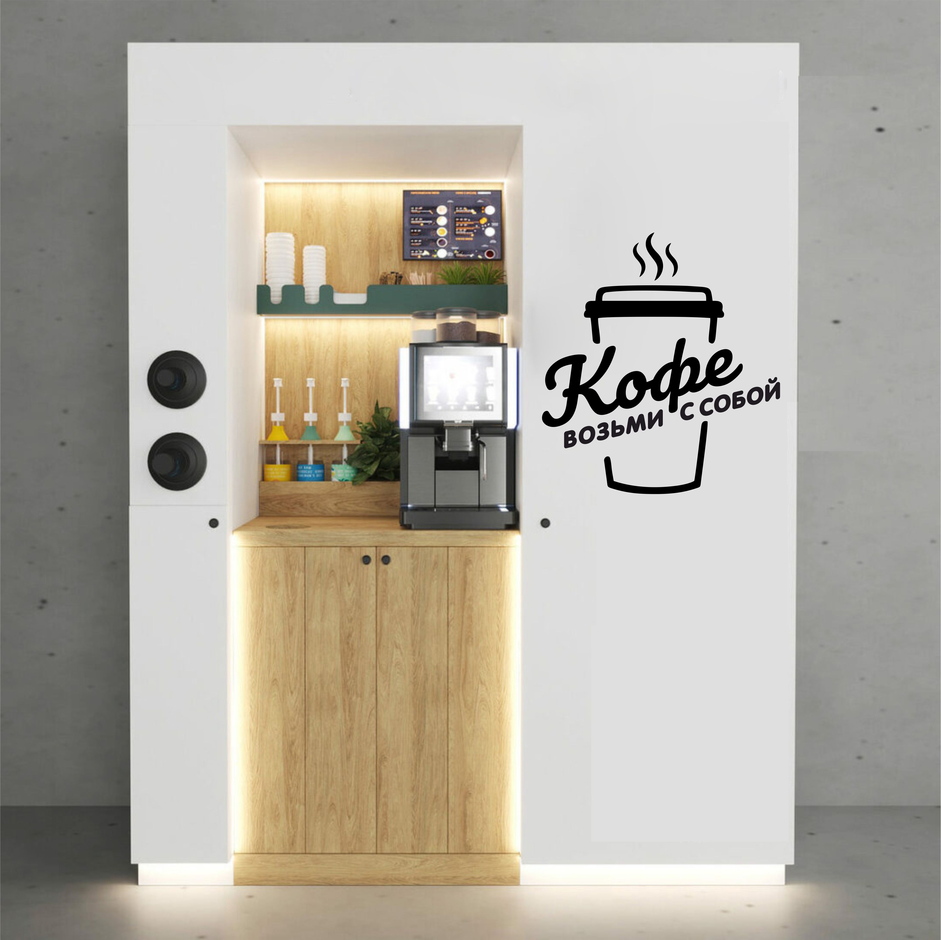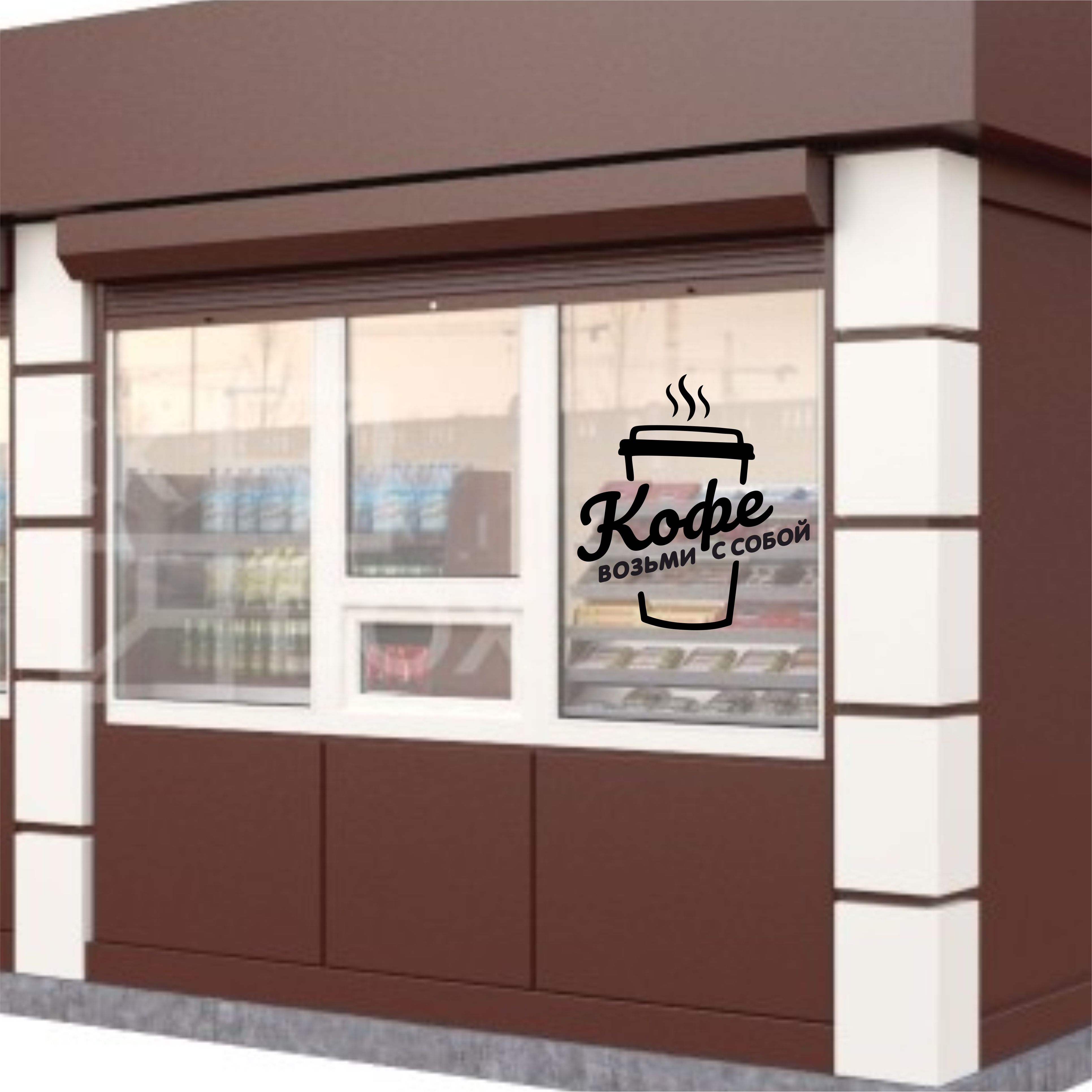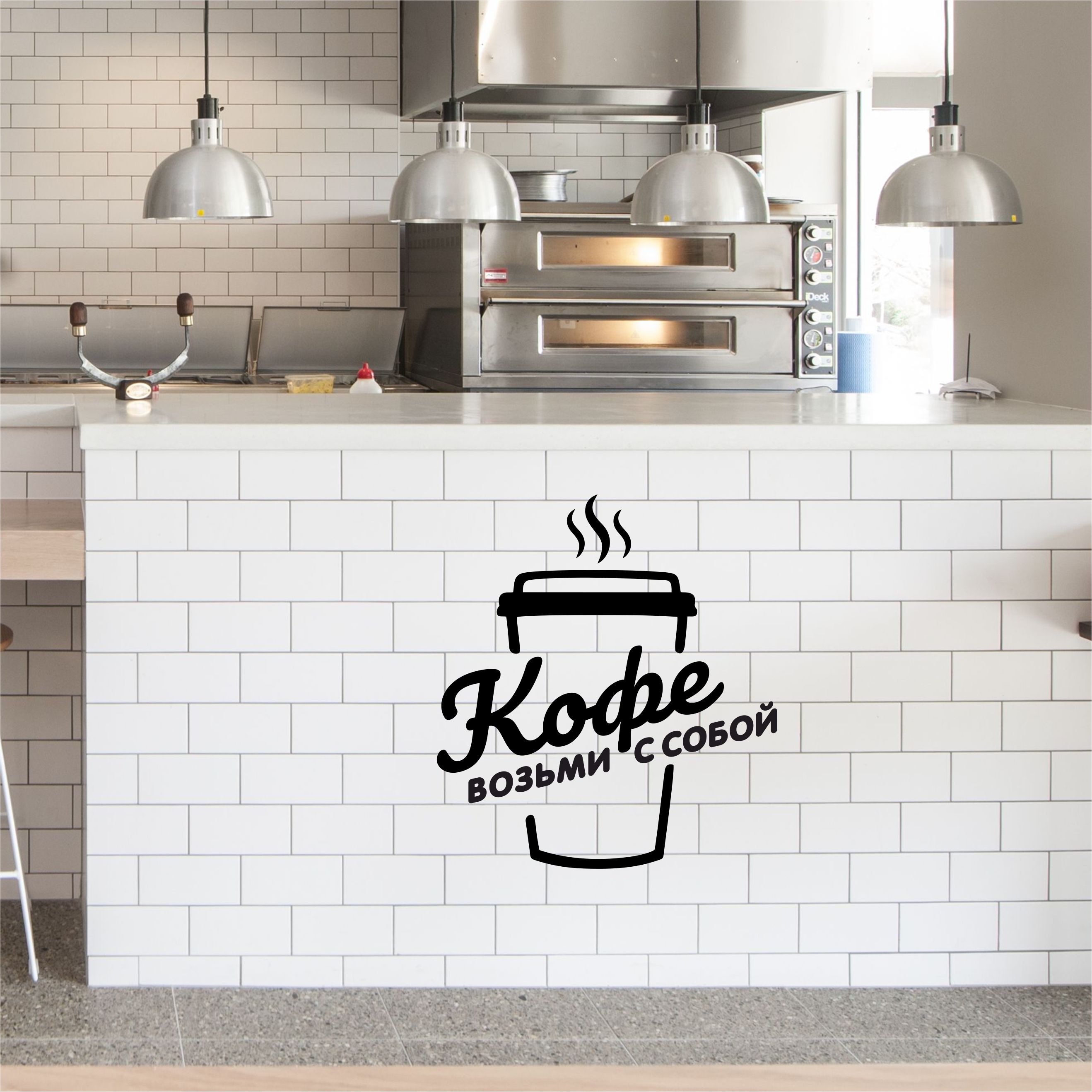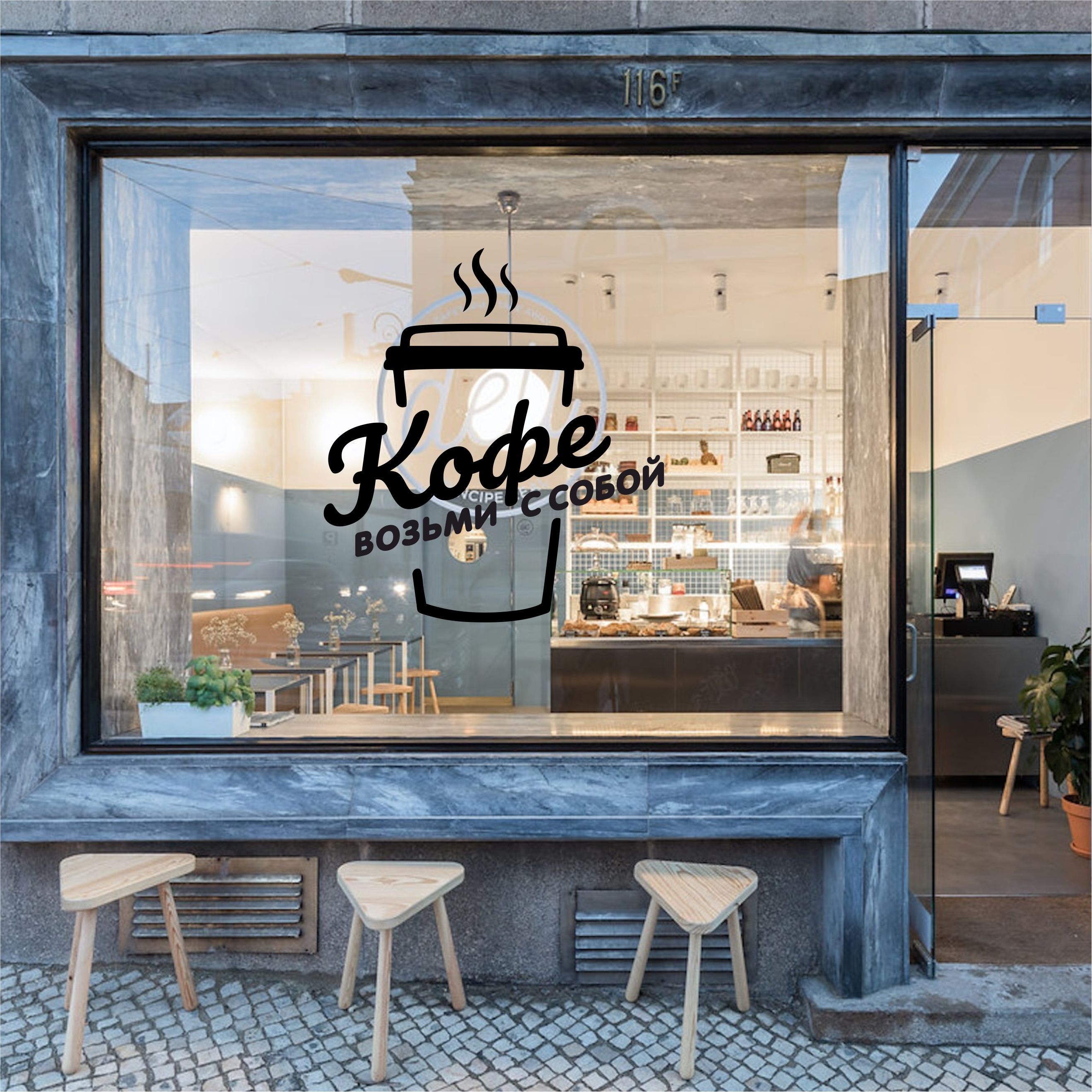Наклейка на стекло "Кофе с собой" для кофейни, на окно или стойку самообслуживания