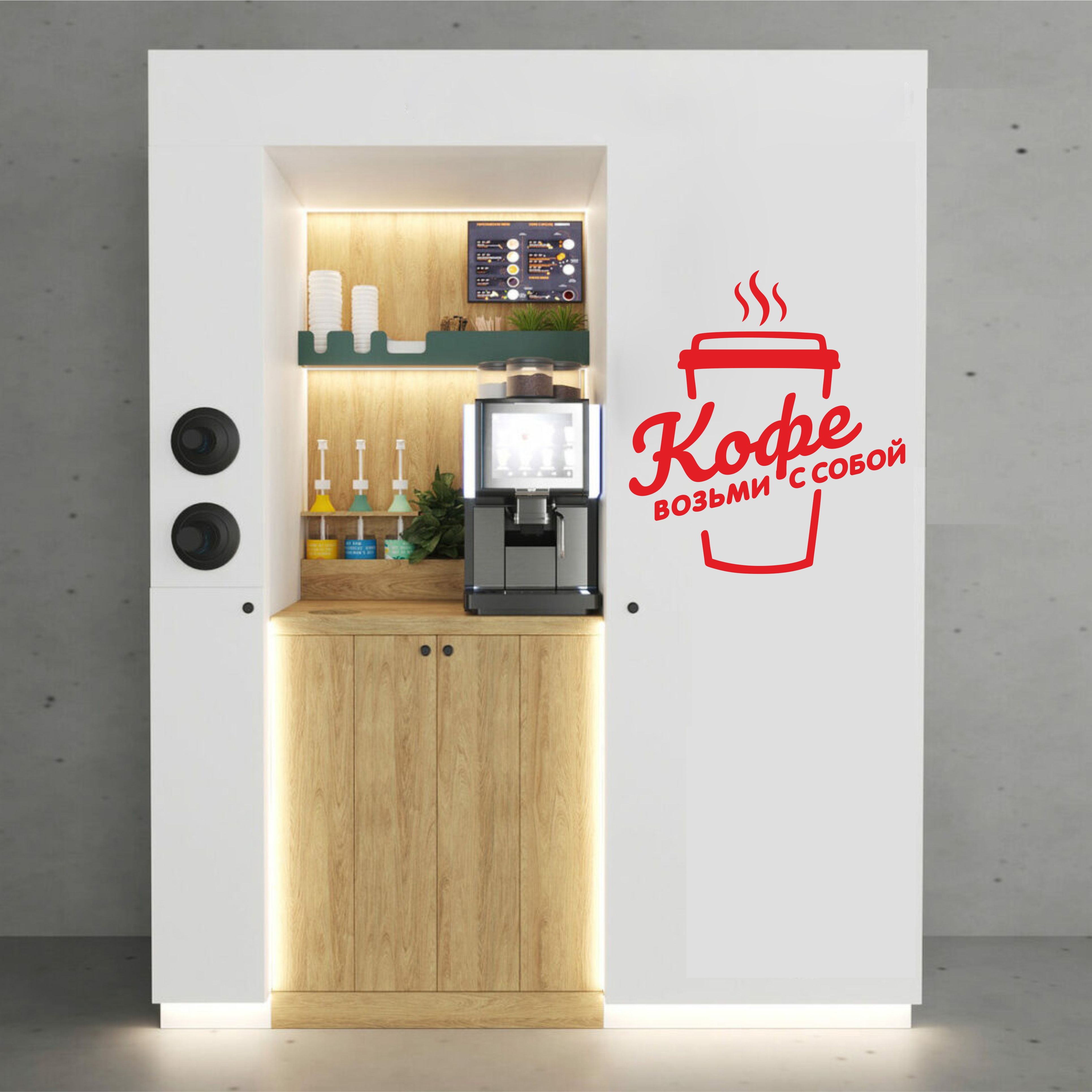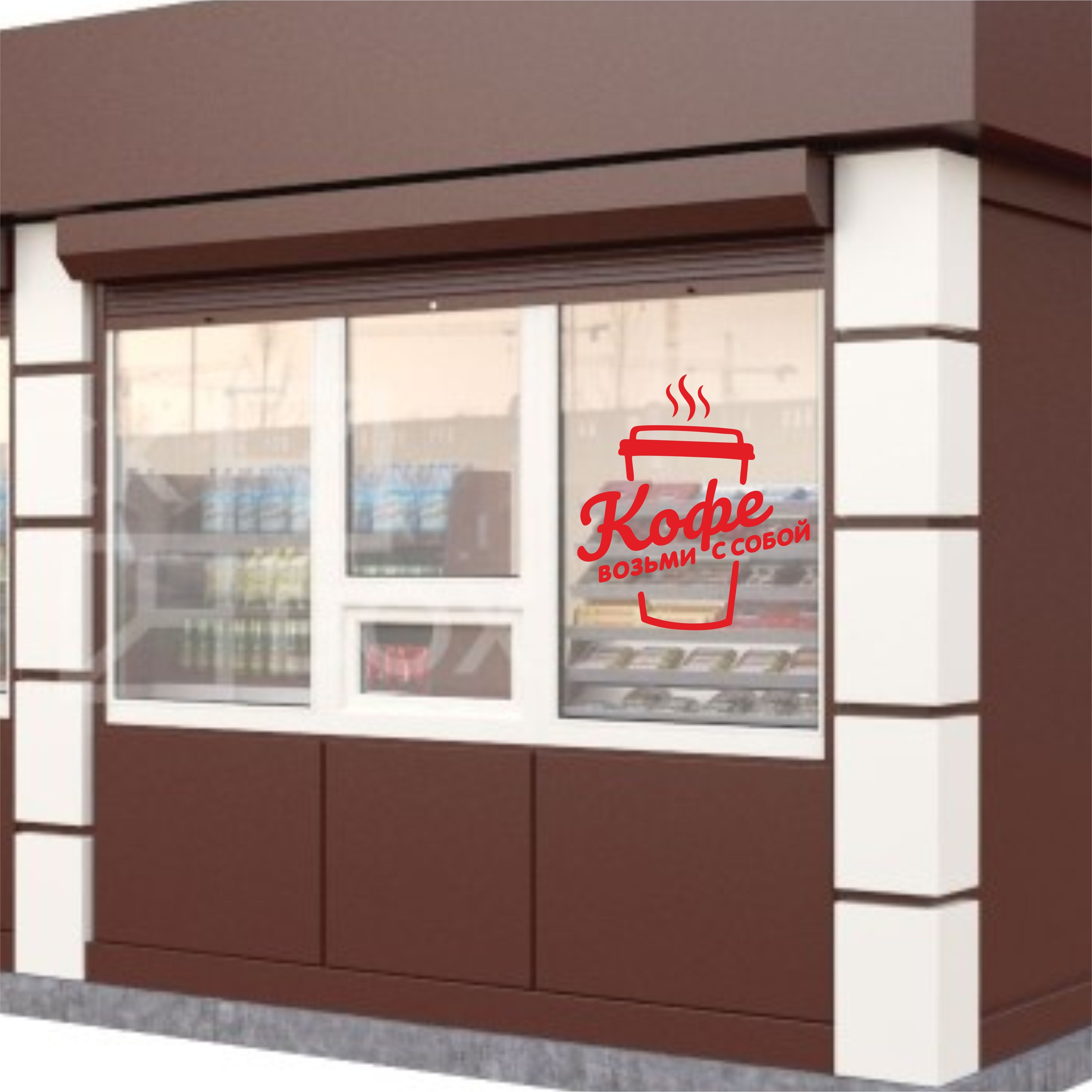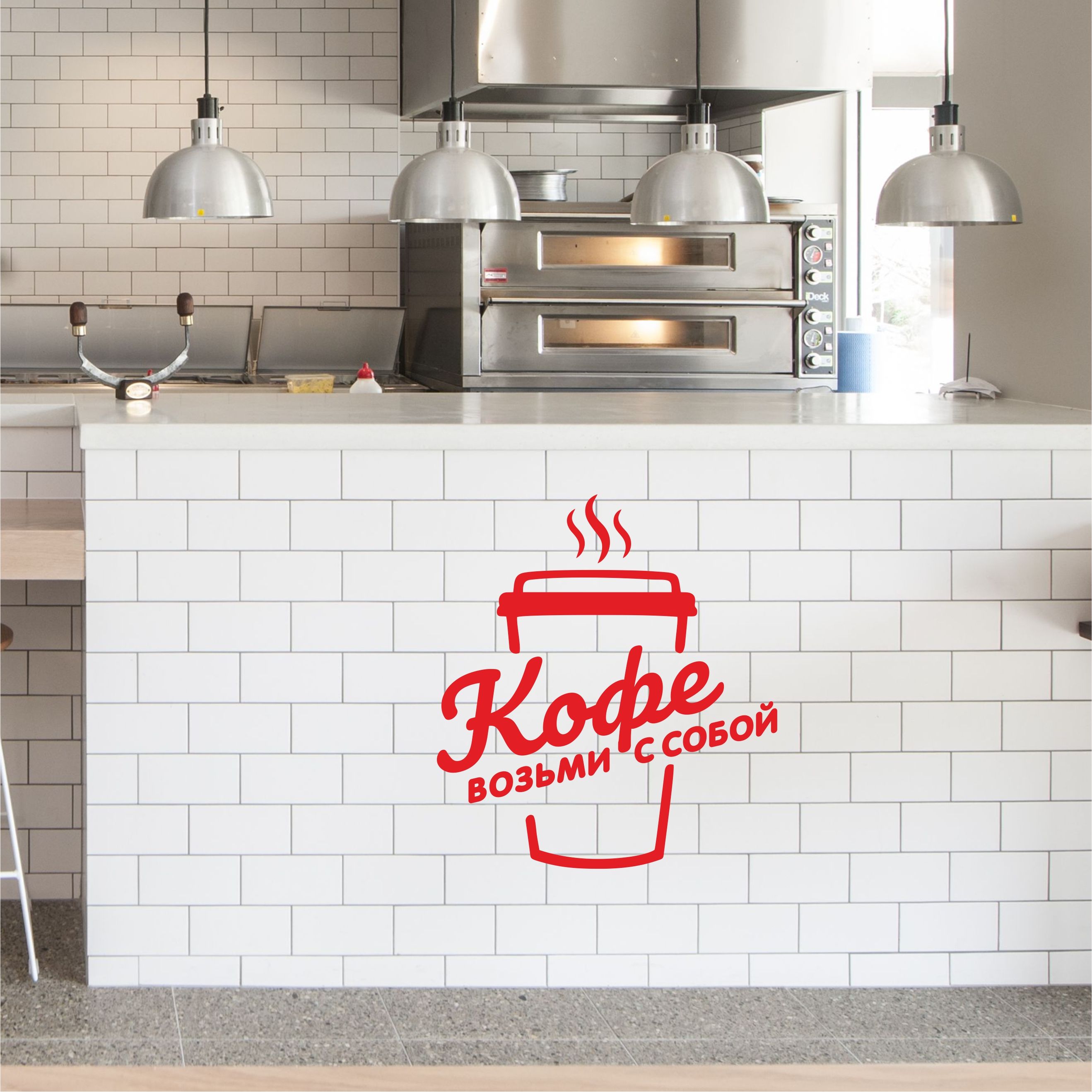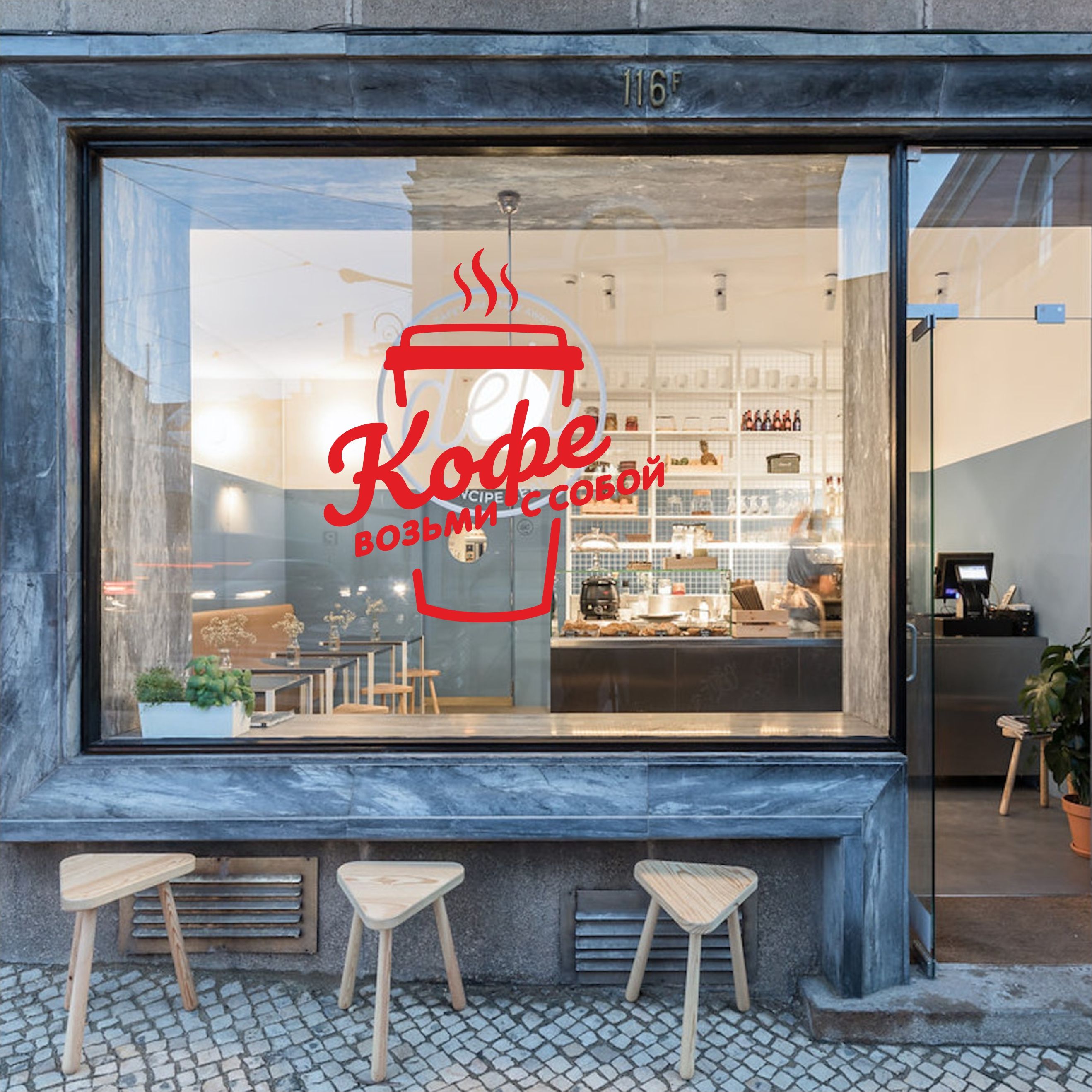 Наклейка на стекло "Кофе с собой" для кофейни, на окно или стойку самообслуживания