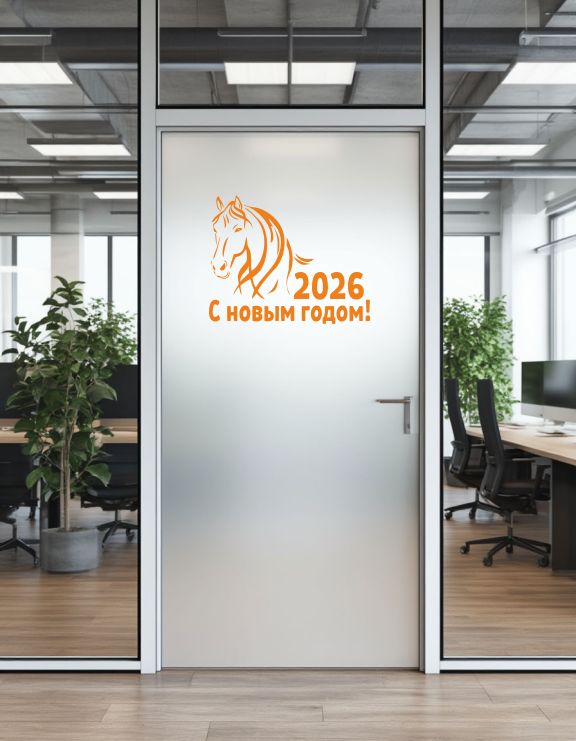 Главная / Каталог продукции / Таблички и декор / Наклейка "С новым годом 2026", символ огненная лошадь, декор на год лошади, на стекло и зеркало