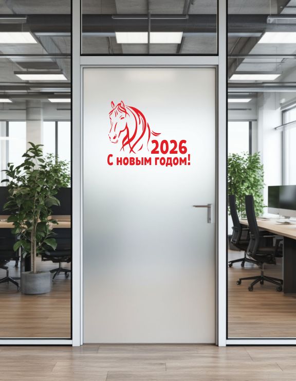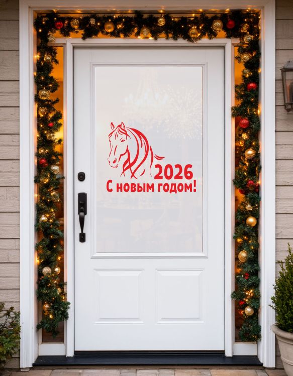 Главная / Каталог продукции / Таблички и декор / Наклейка "С новым годом 2026", символ огненная лошадь, декор на год лошади, на стекло и зеркало