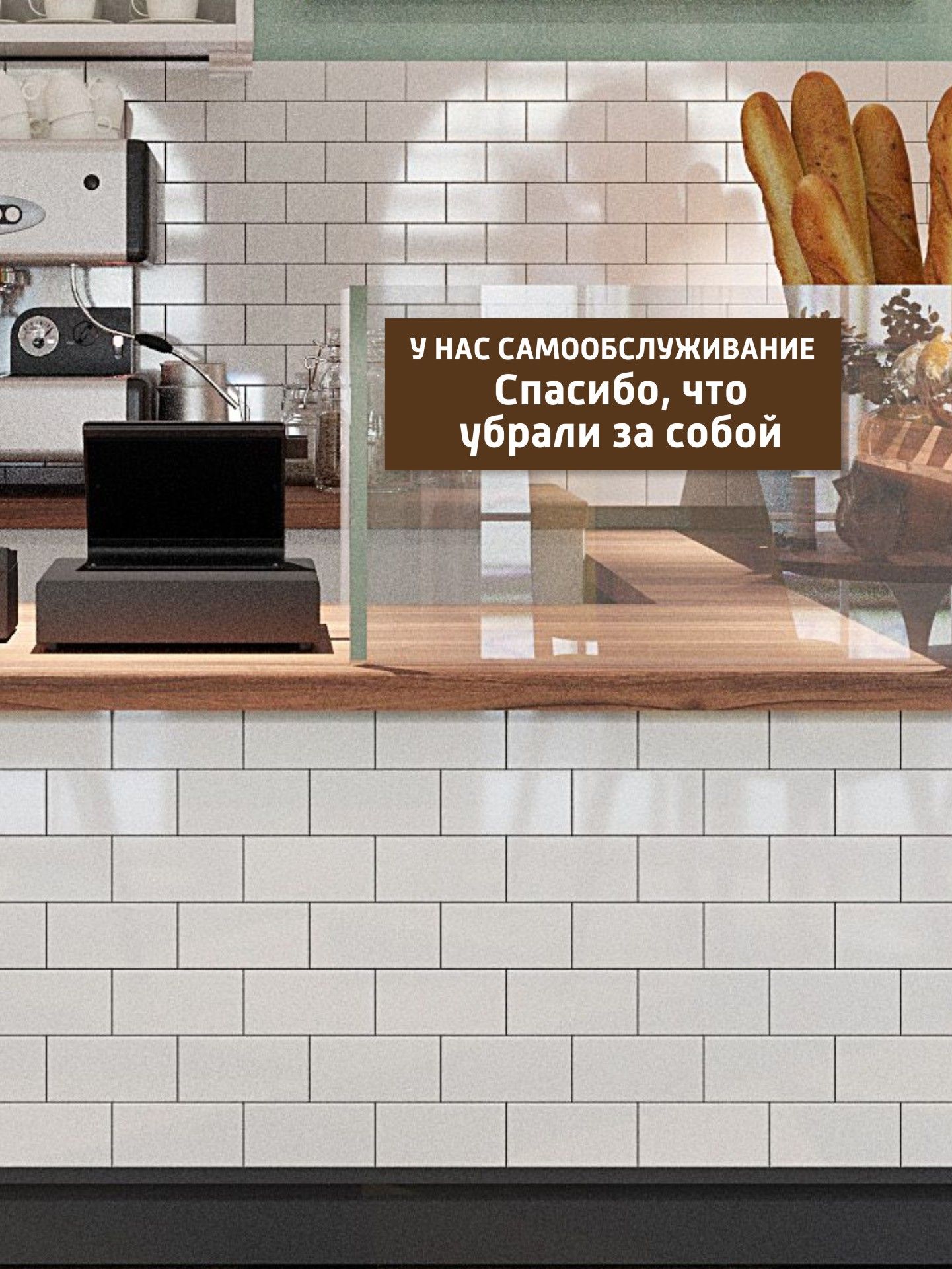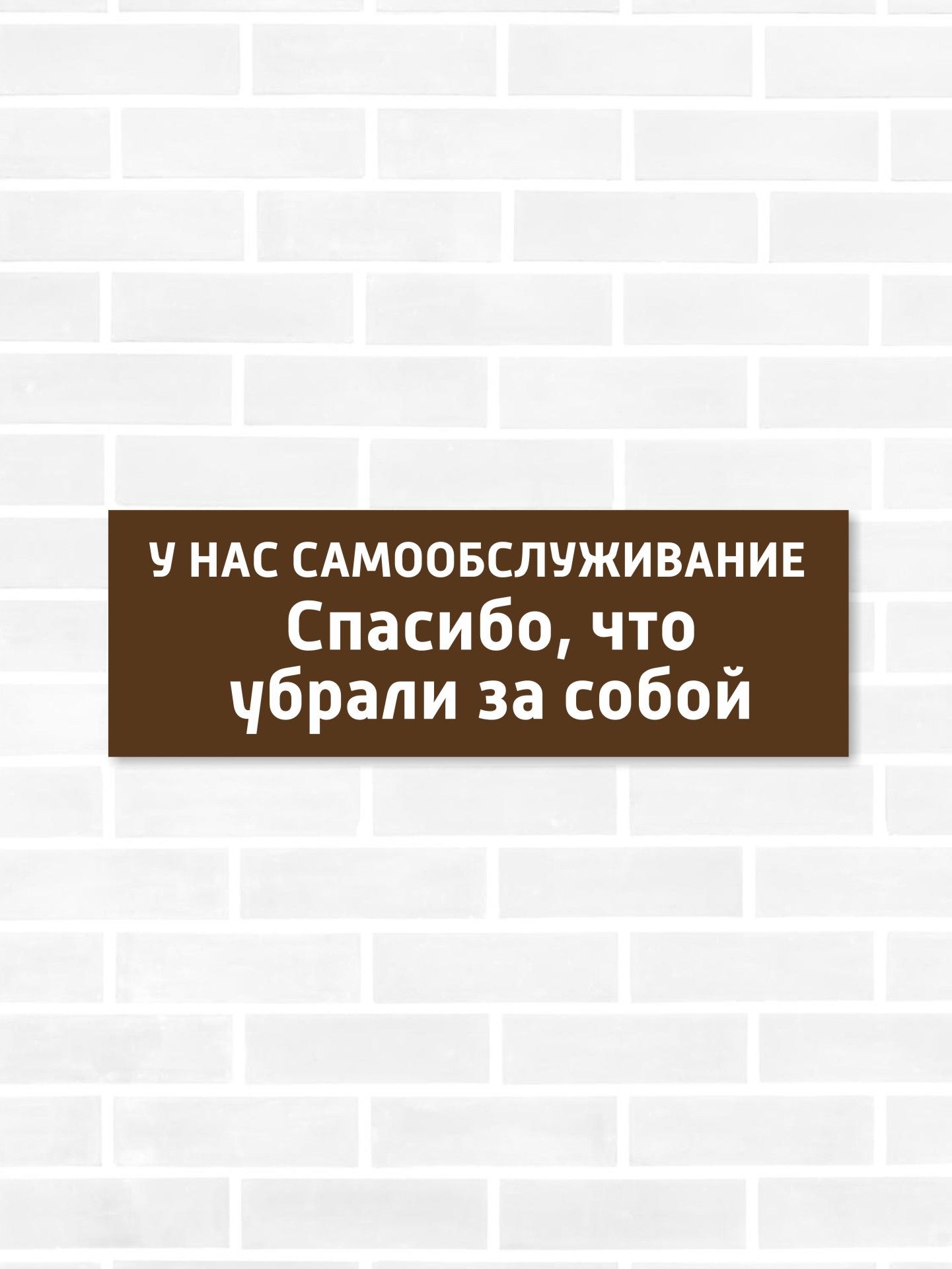 Пластиковая табличка "У нас самообслуживание, спасибо, что убрали за собой" из ПВХ толщиной 3мм