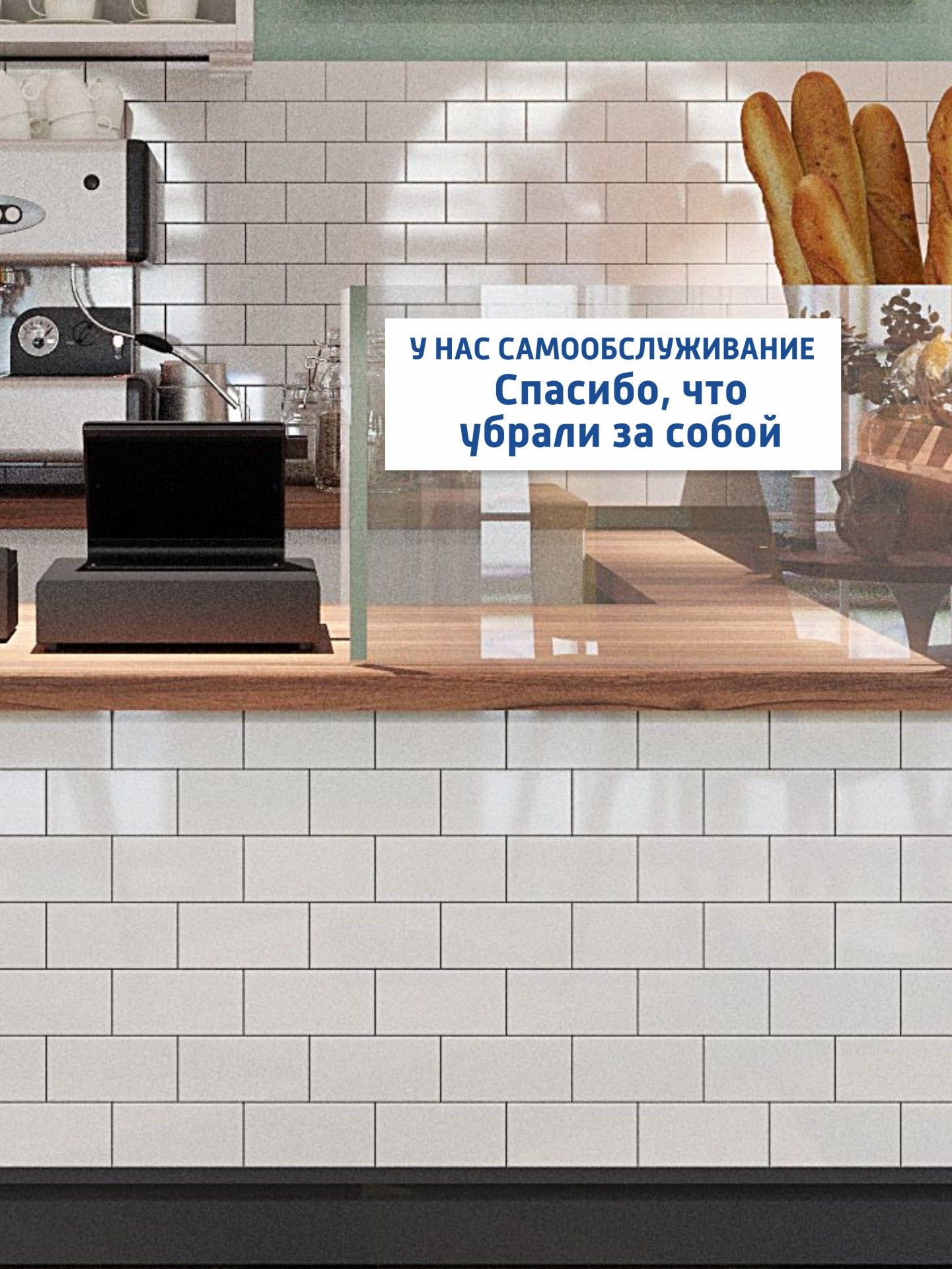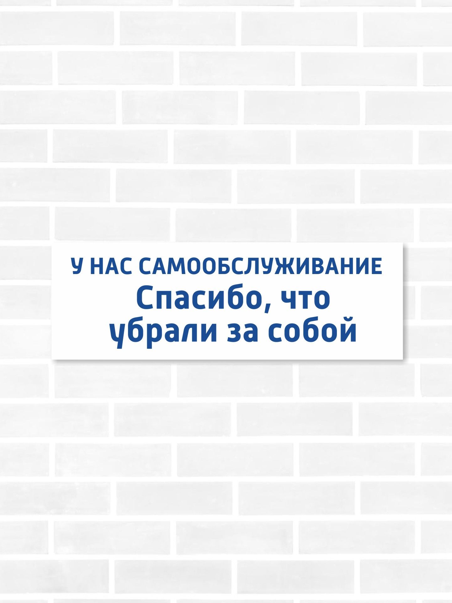 Пластиковая табличка "У нас самообслуживание, спасибо, что убрали за собой" из ПВХ толщиной 3мм