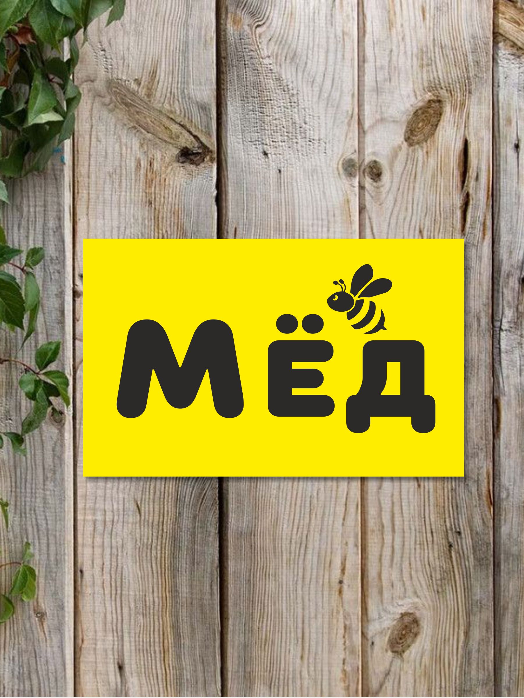 Главная / Каталог продукции / Вывески и оформление торговых точек / Пластиковая табличка/вывеска "Мёд", для точки продажи Меда, 40х25см, со стрелкой направления