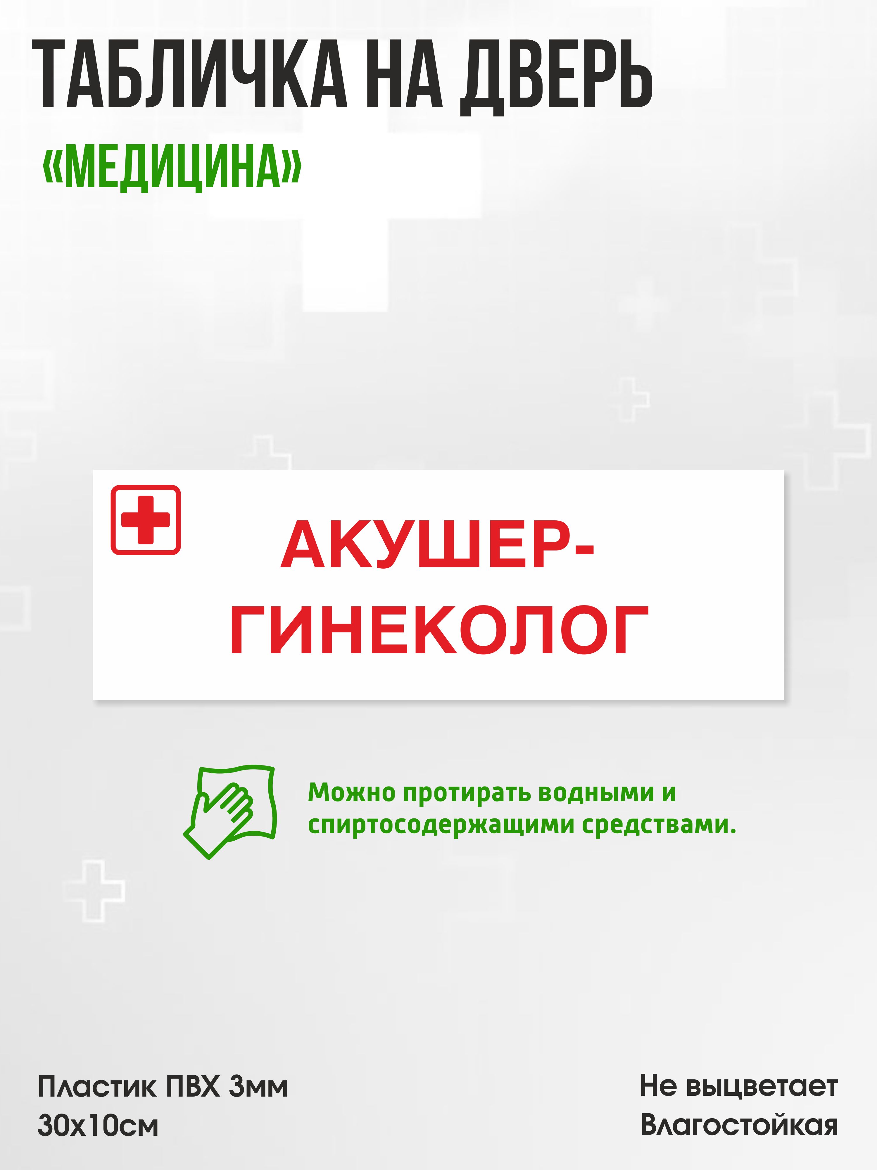 Табличка Акушер-гинеколог, белая, 30х10см, ПВХ пластик, на дверь, для медицинской клиники или больницы