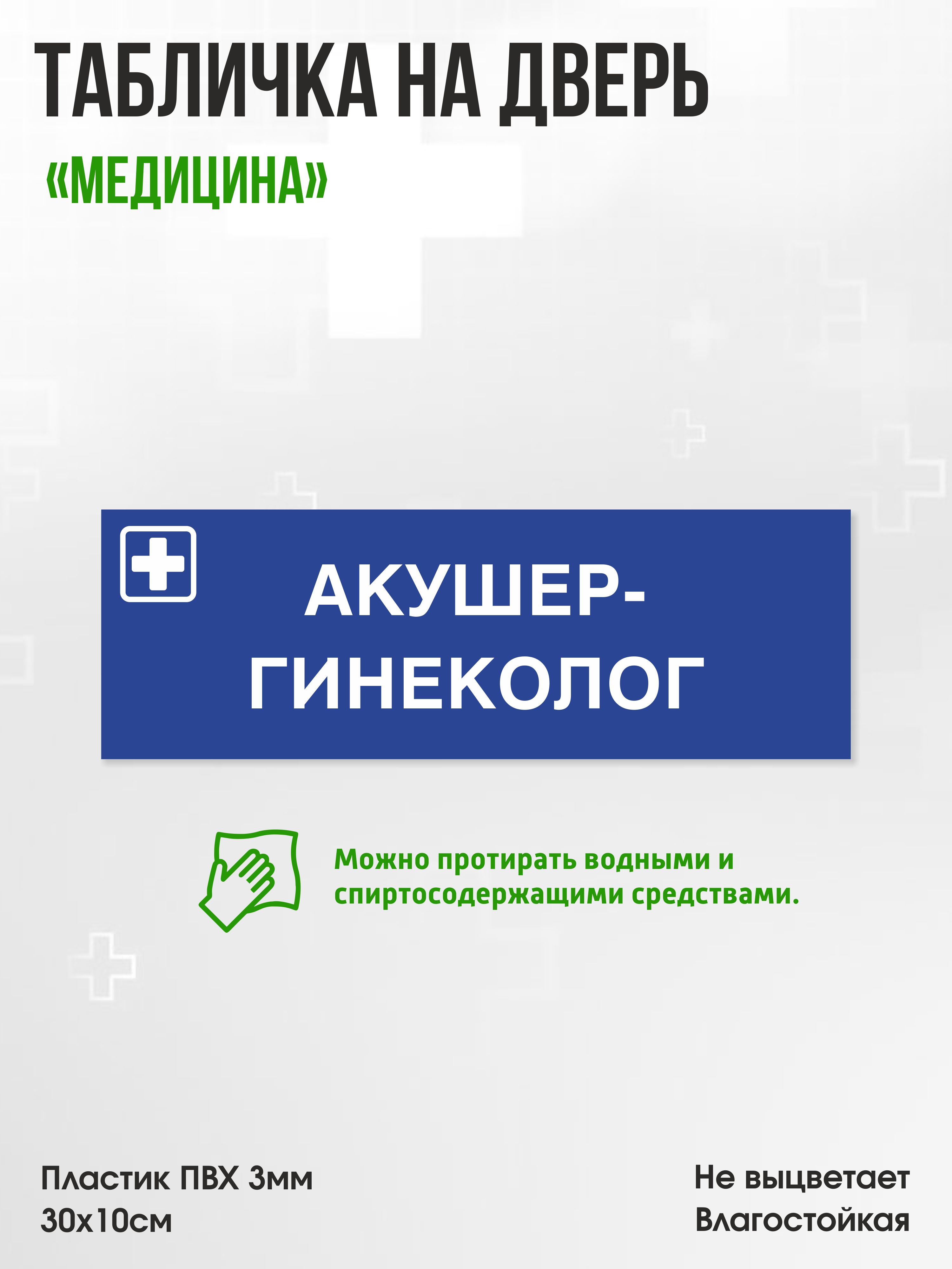 Табличка Акушер-гинеколог, синяя, 30х10см, ПВХ пластик, на дверь, для медицинской клиники или больницы