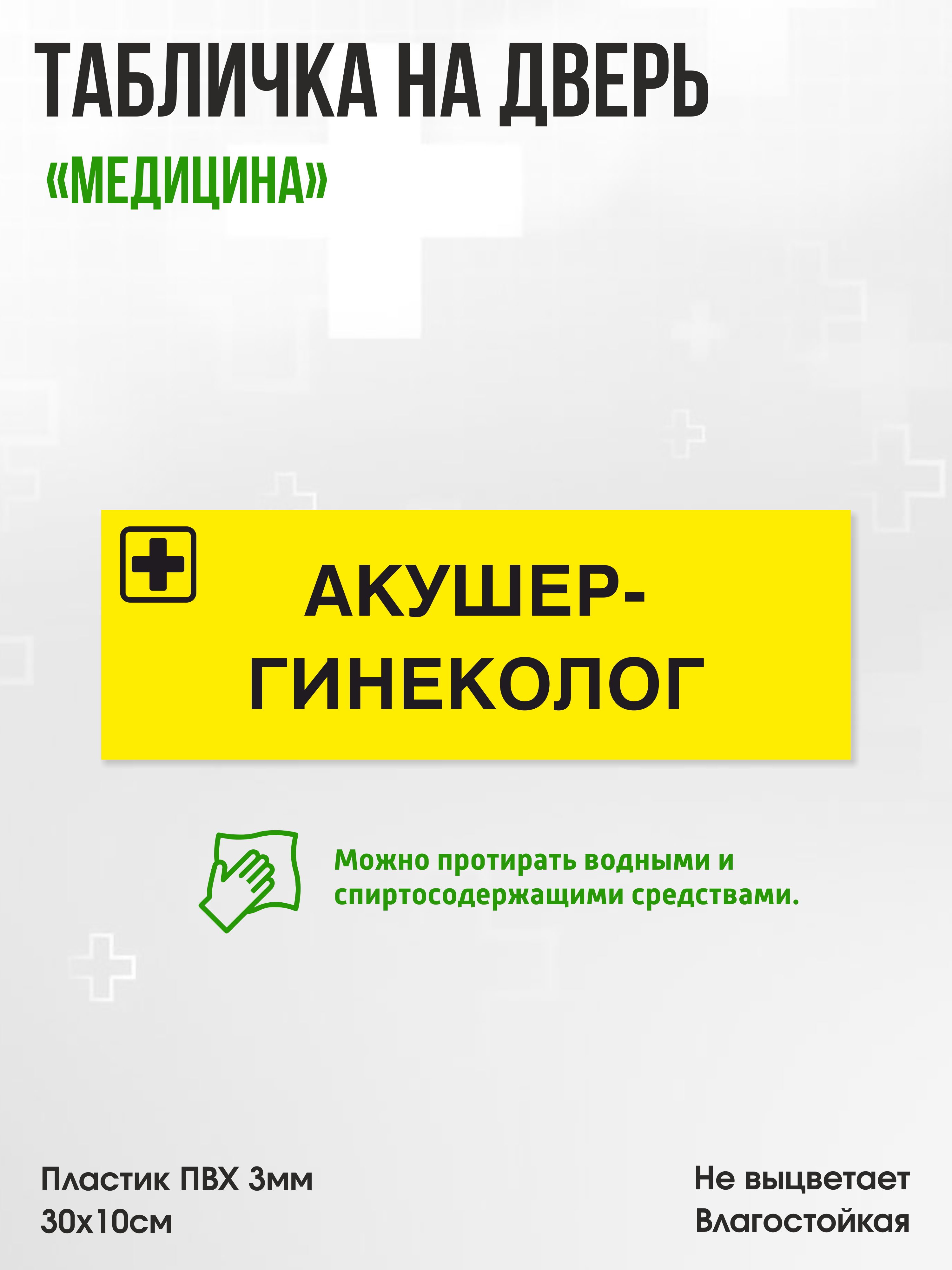 Табличка Акушер-гинеколог, жёлтая, 30х10см, ПВХ пластик, на дверь, для медицинской клиники или больницы