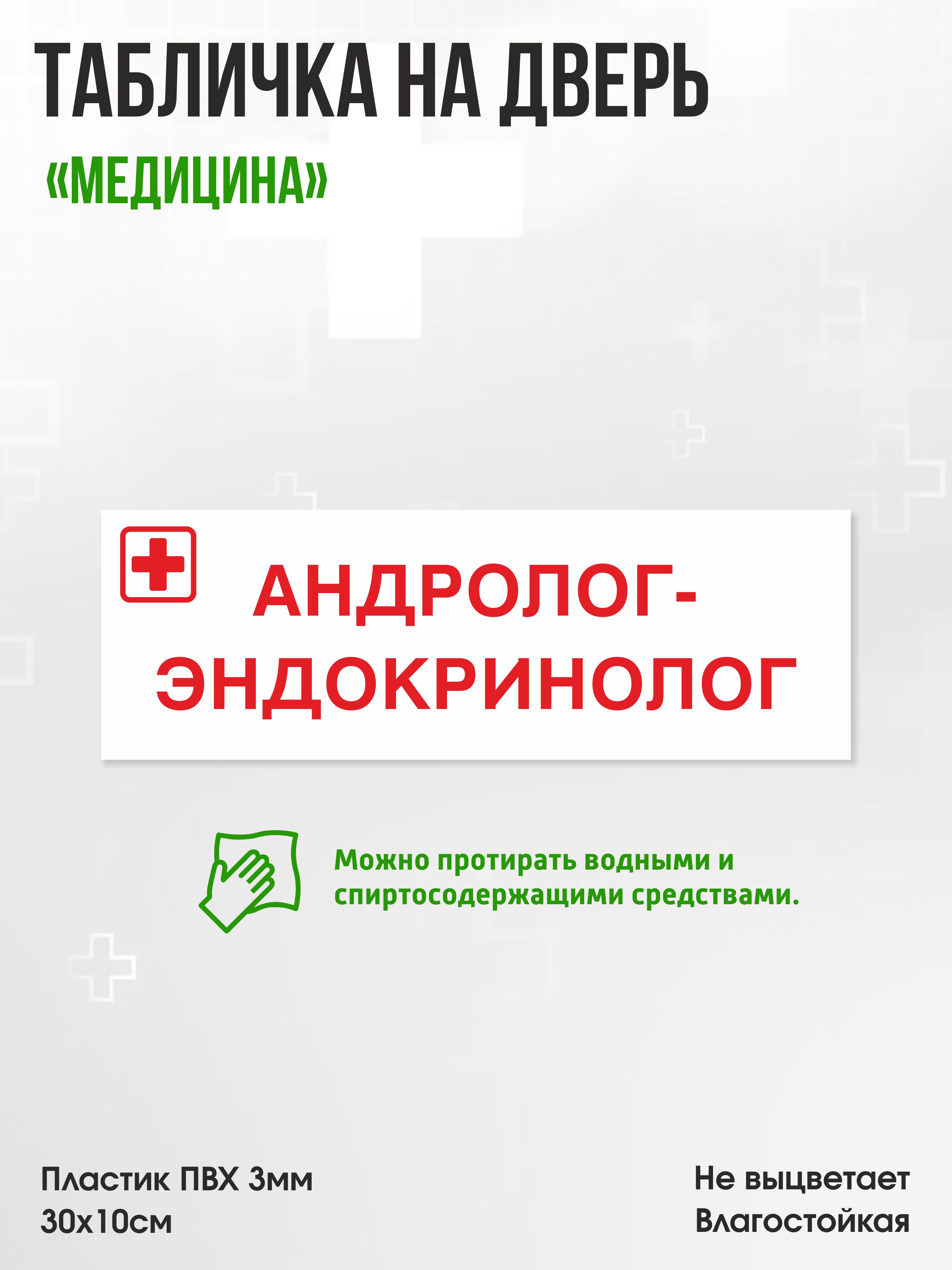 Табличка Андролог-эндокринолог, белая, 30х10см, ПВХ пластик, на дверь, для медицинской клиники или больницы