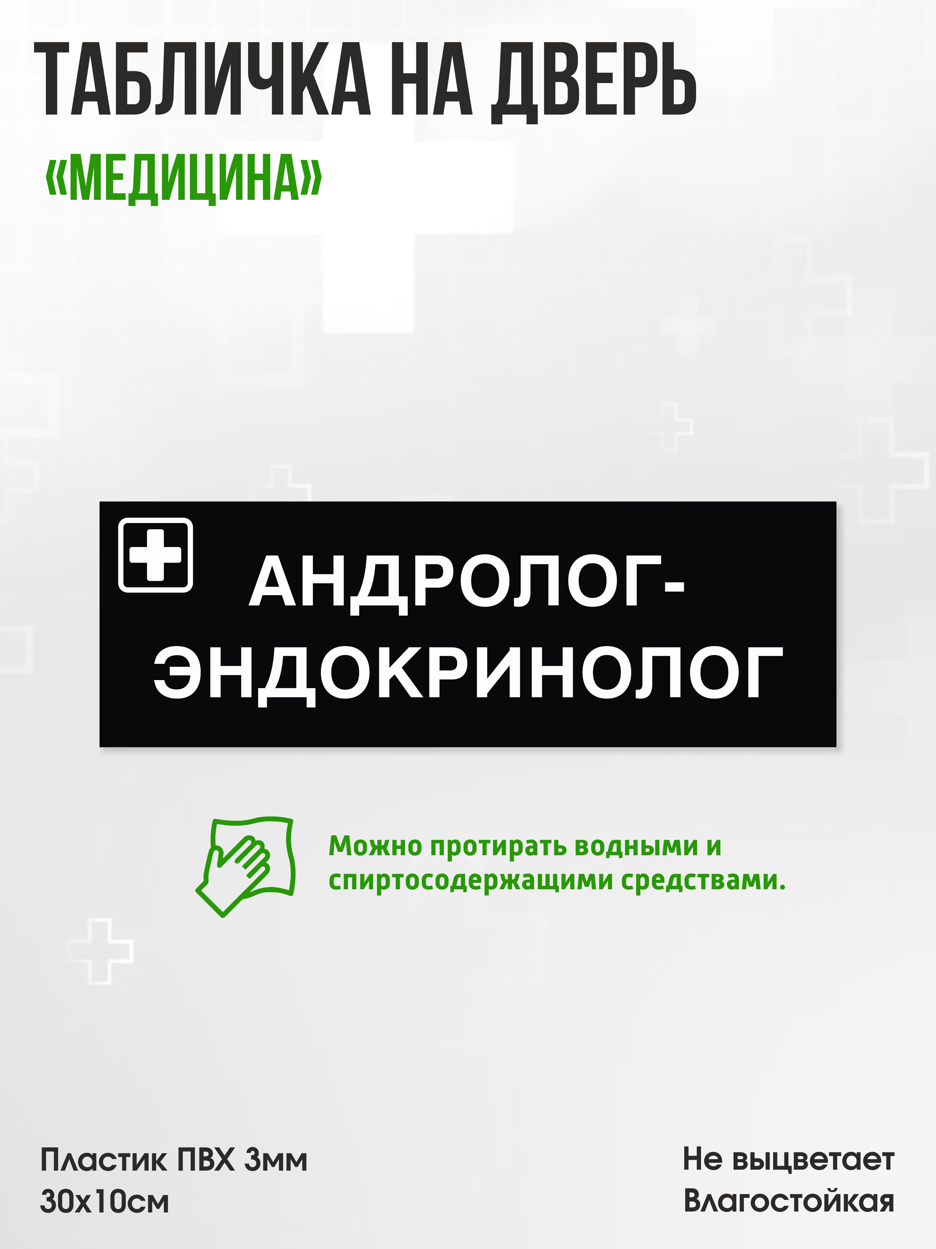 Табличка Андролог-эндокринолог, черная, 30х10см, ПВХ пластик, на дверь, для медицинской клиники или больницы