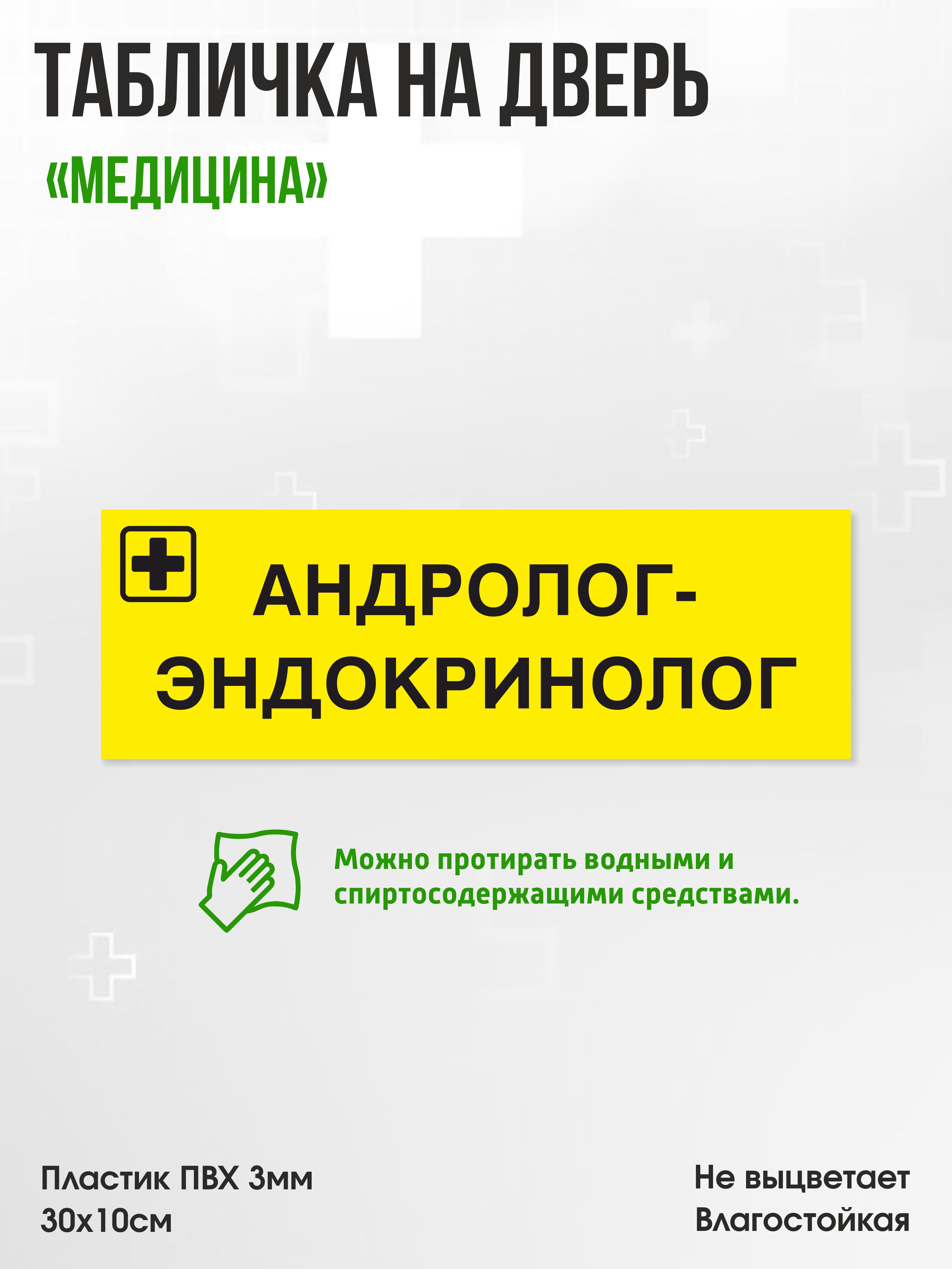 Табличка Андролог-эндокринолог, жёлтая, 30х10см, ПВХ пластик, на дверь, для медицинской клиники или больницы