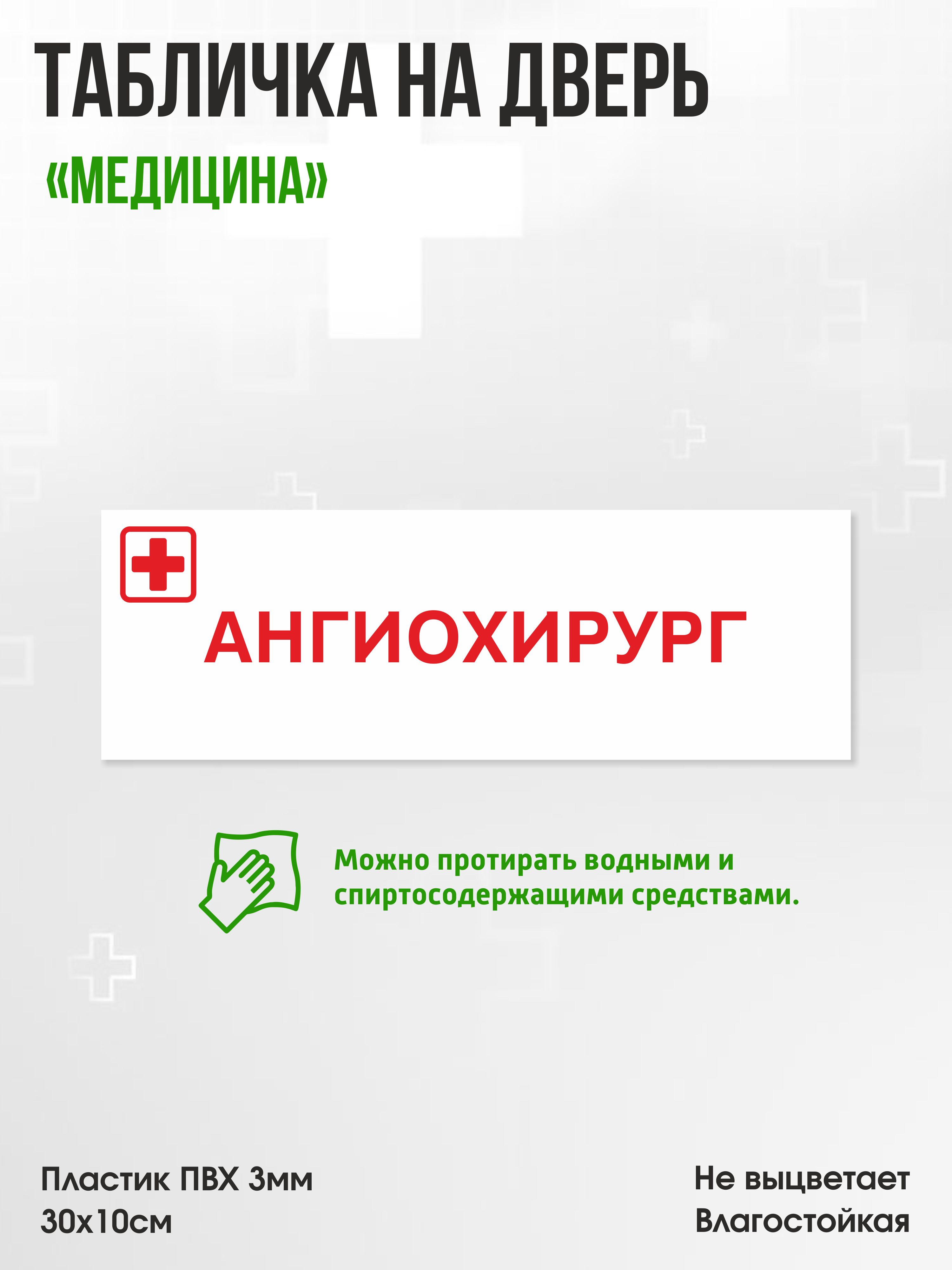 Табличка Ангиохирург, белая, 30х10см, ПВХ пластик, на дверь, для медицинской клиники или больницы