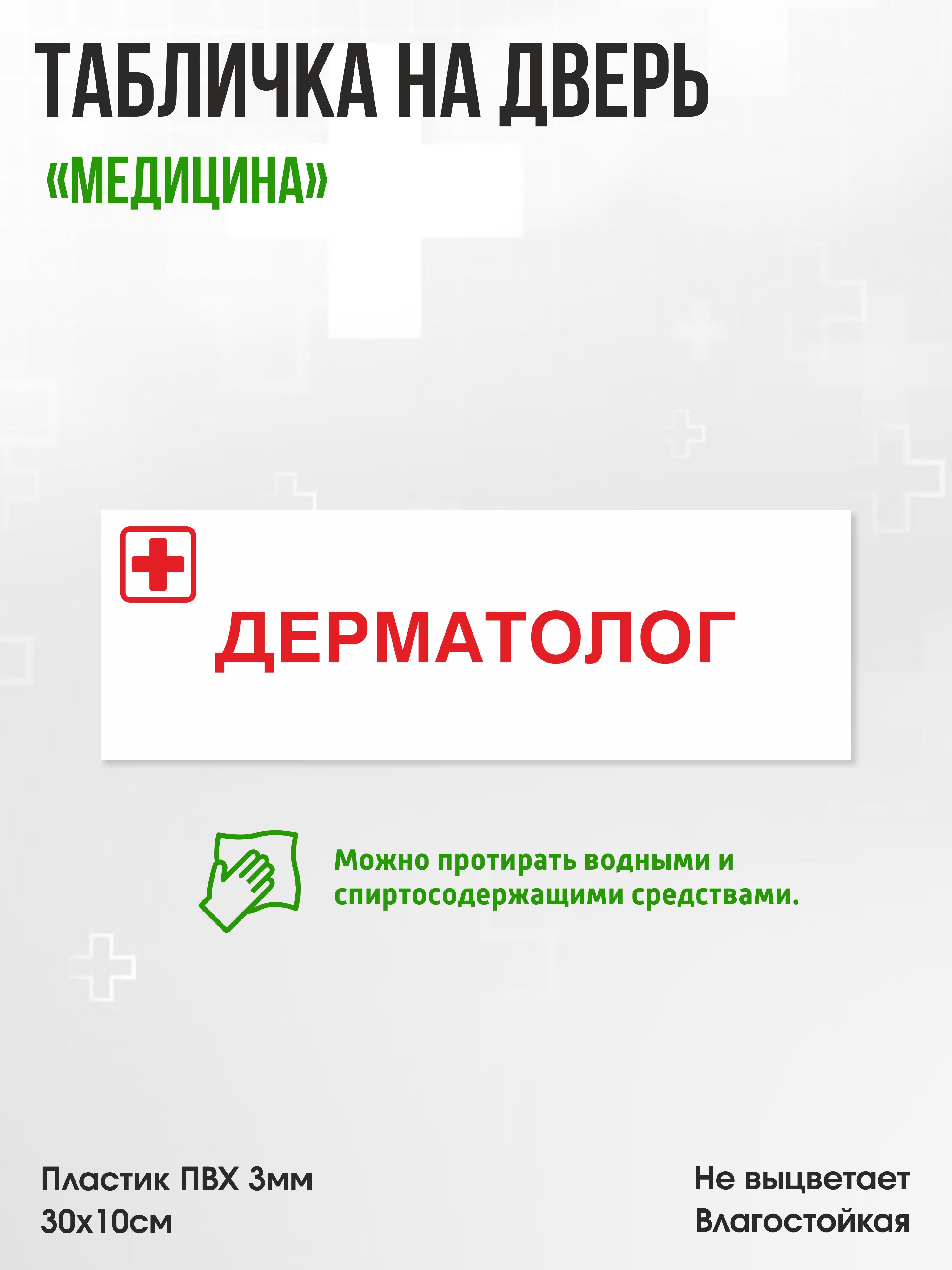Табличка Дерматолог, белая, 30х10см, ПВХ пластик, на дверь, для медицинской клиники или больницы