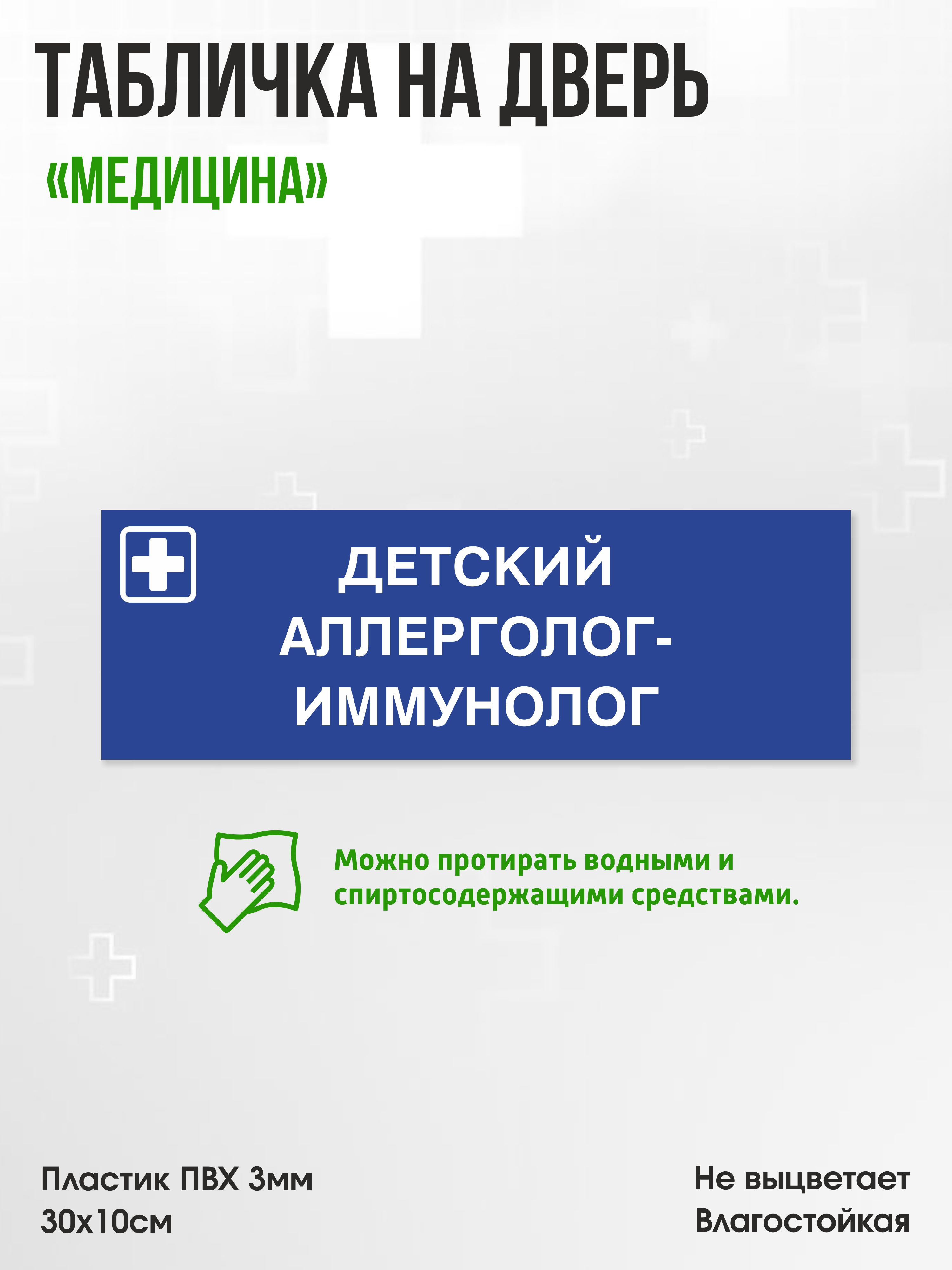 Табличка Детский аллерголог-иммунолог, синяя, 30х10см, ПВХ пластик, на дверь, для медицинской клиники или больницы