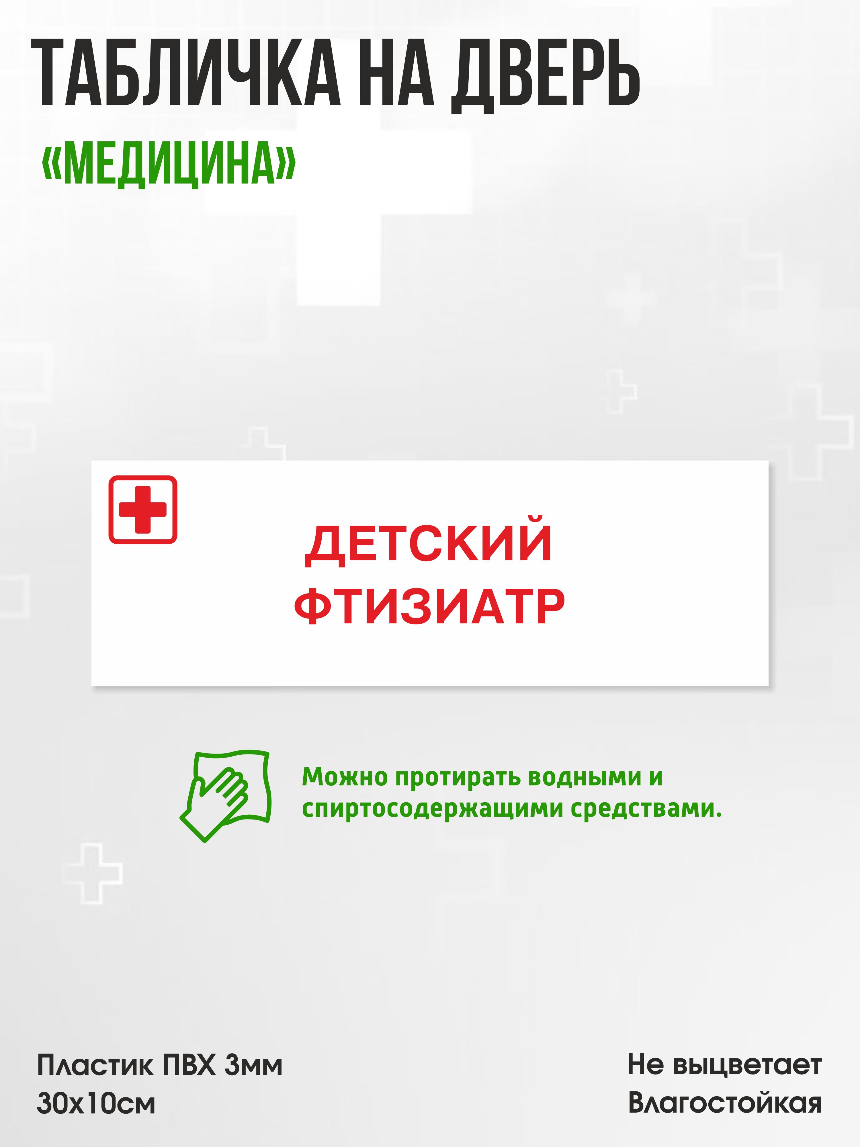 Табличка Детский фтизиатр, белая, 30х10см, ПВХ пластик, на дверь, для медицинской клиники или больницы