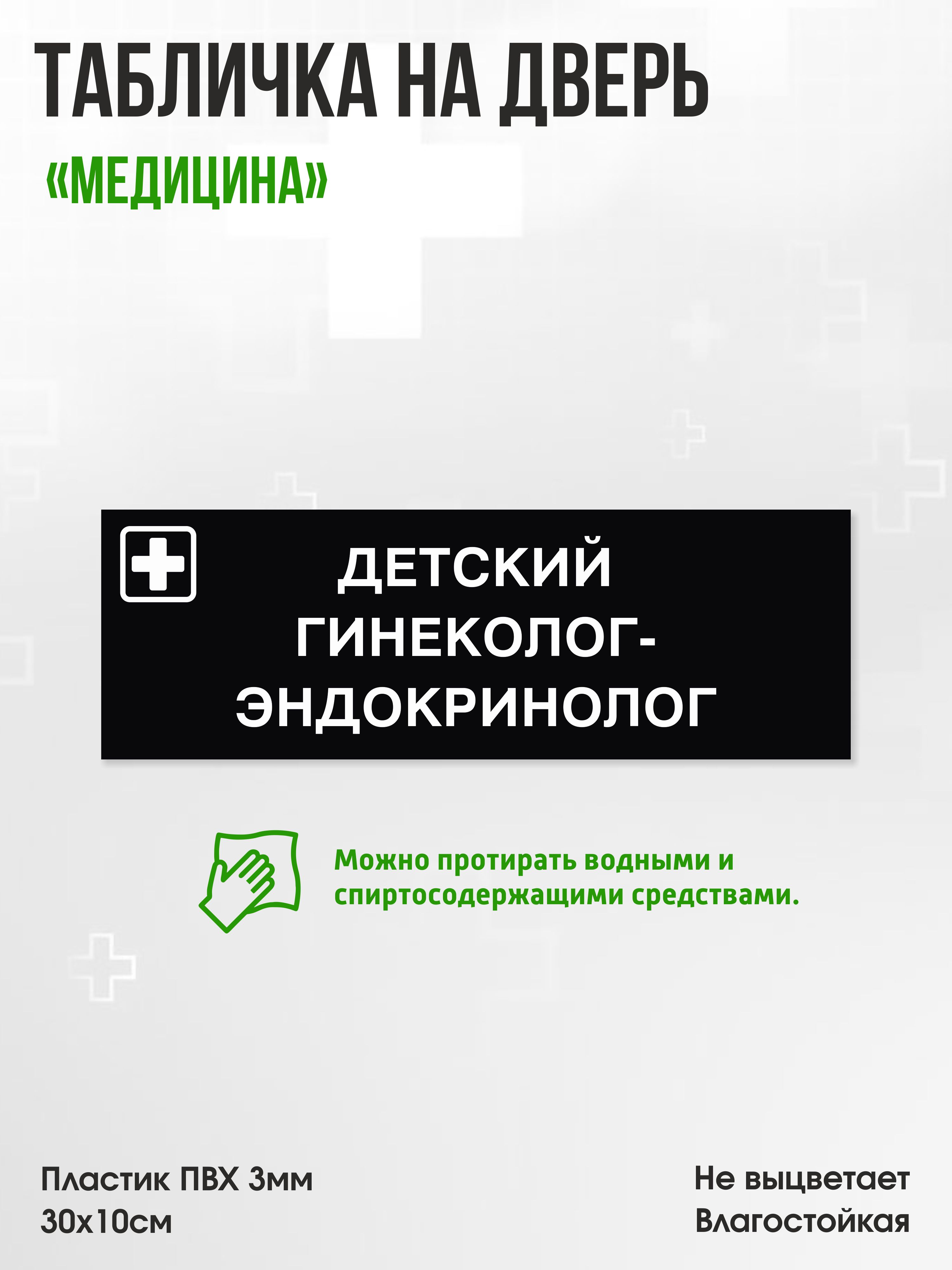 Табличка Детский гинеколог-эндокринолог, черная, 30х10см, ПВХ пластик, на дверь, для медицинской клиники или больницы