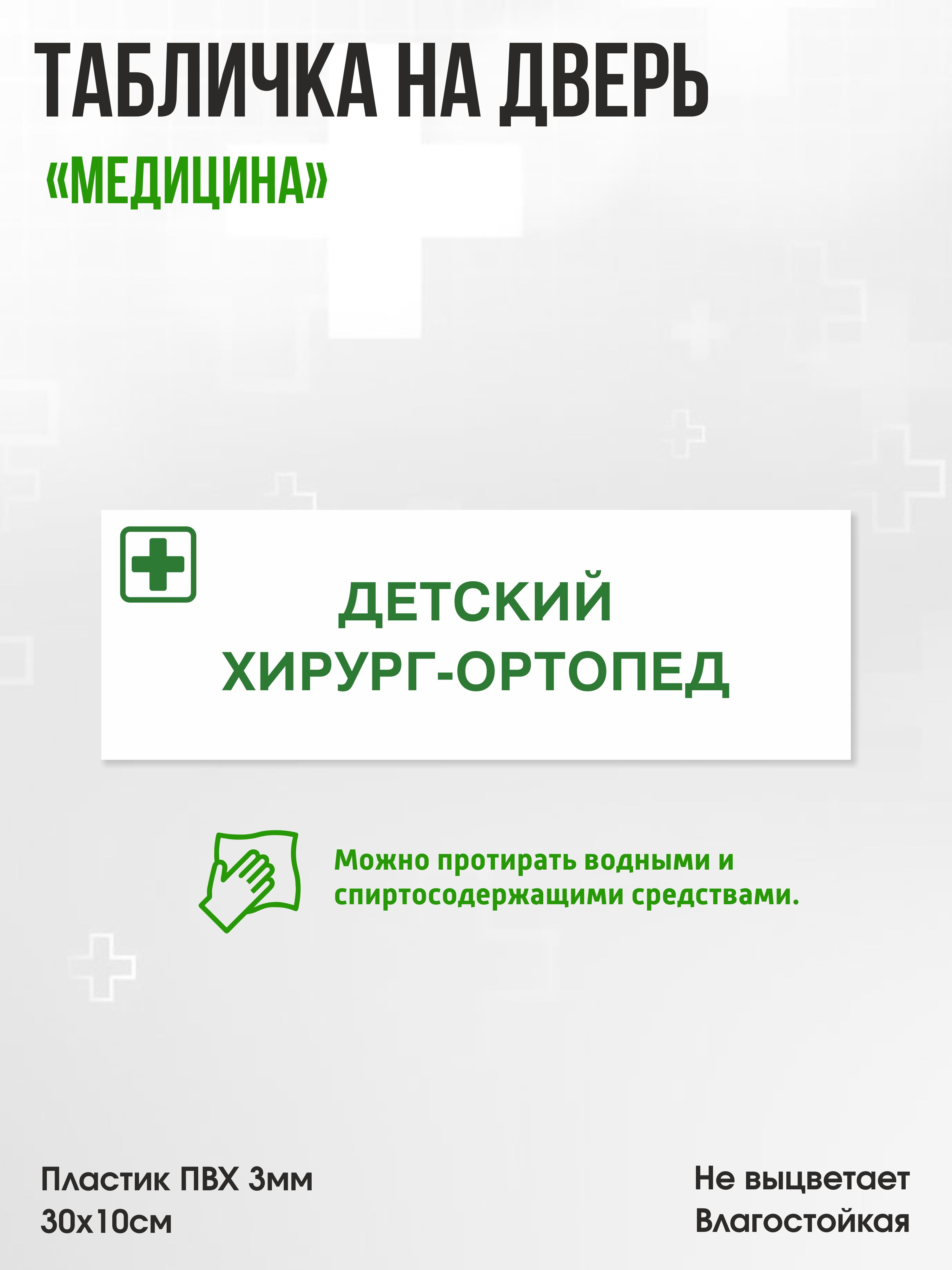 Табличка Детский хирург-ортопед, белая, 30х10см, ПВХ пластик, на дверь, для медицинской клиники или больницы