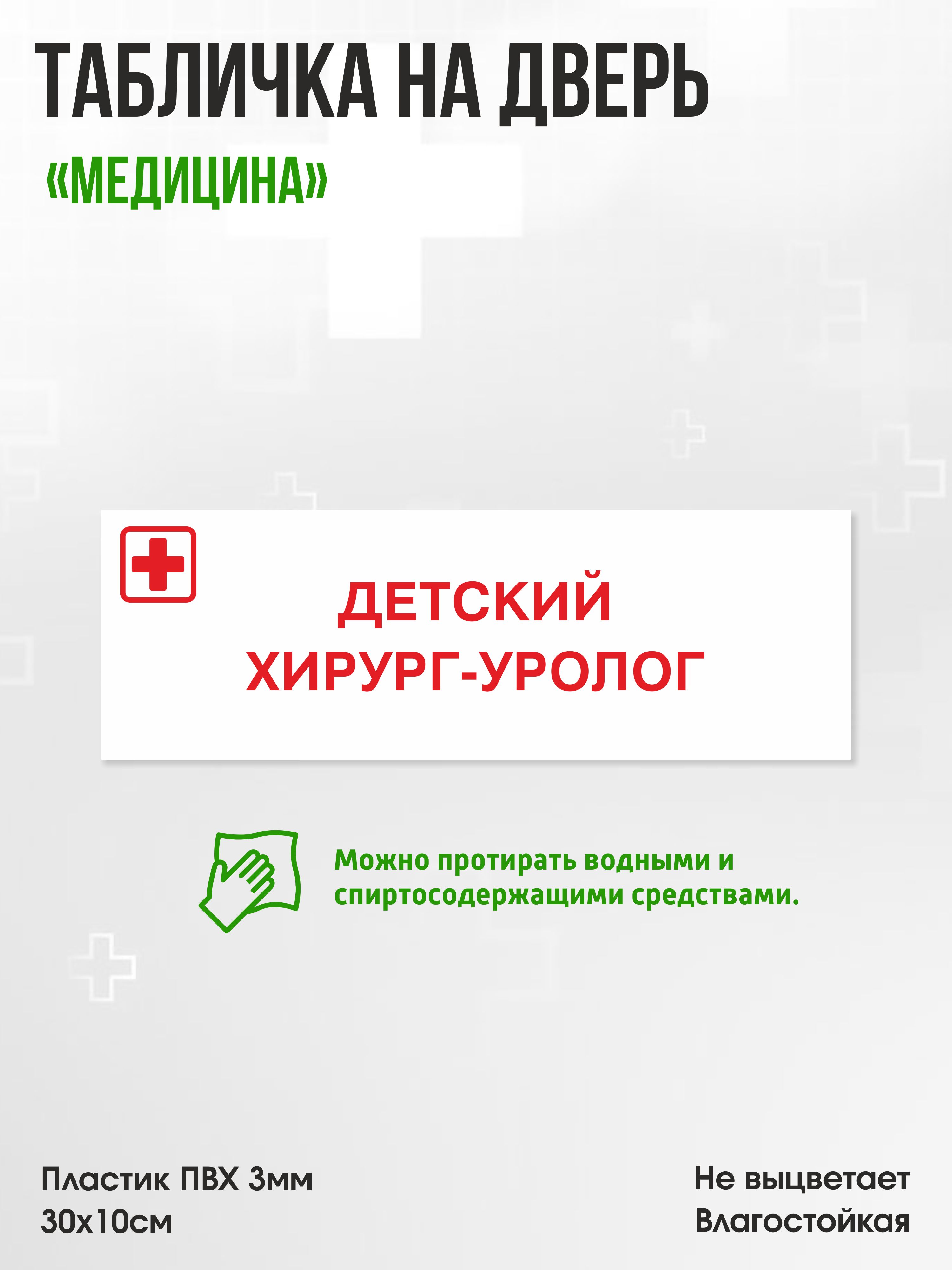 Табличка Детский хирург-уролог, белая, 30х10см, ПВХ пластик, на дверь, для медицинской клиники или больницы