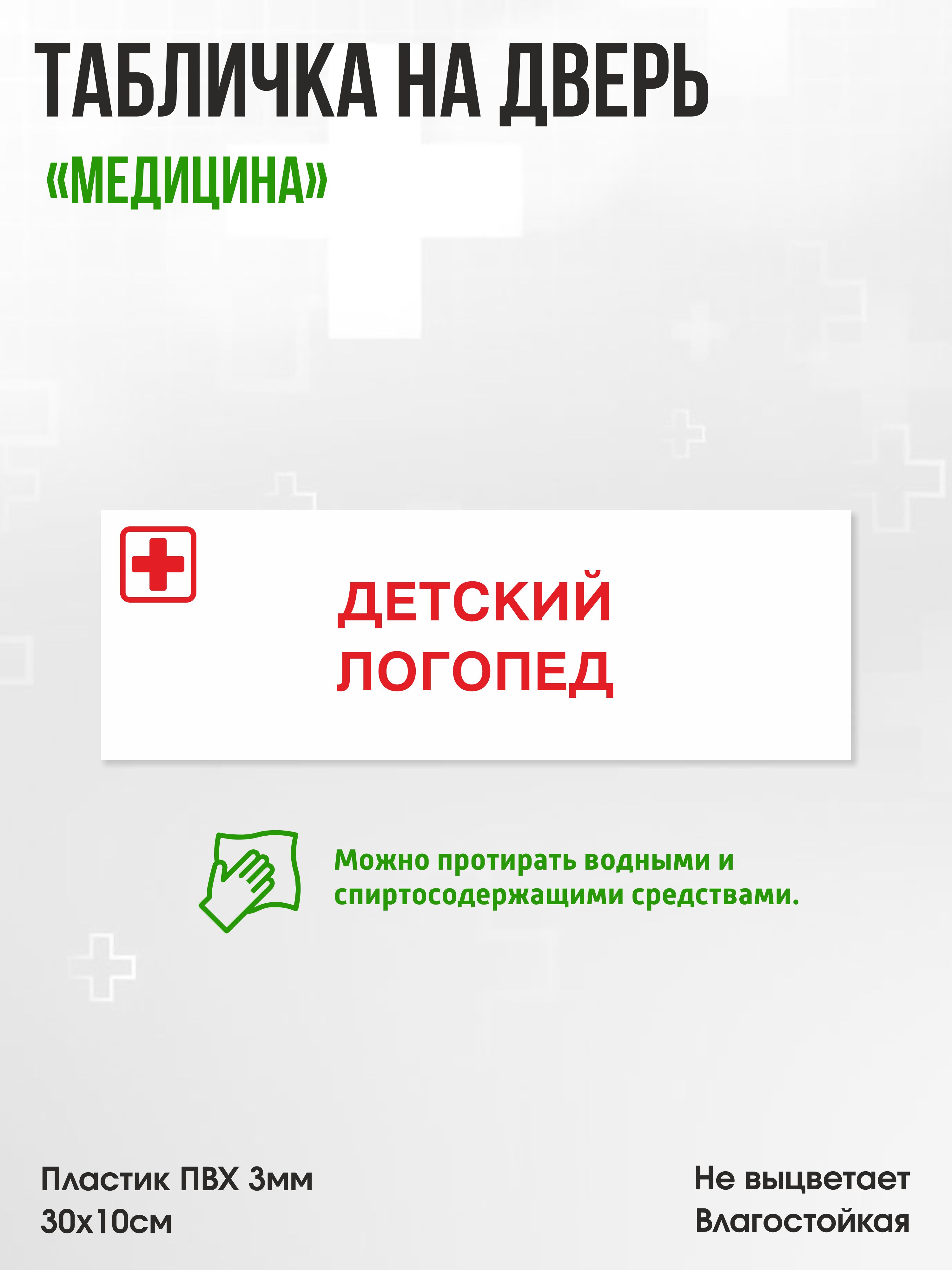 Табличка Детский логопед, белая, 30х10см, ПВХ пластик, на дверь, для медицинской клиники или больницы