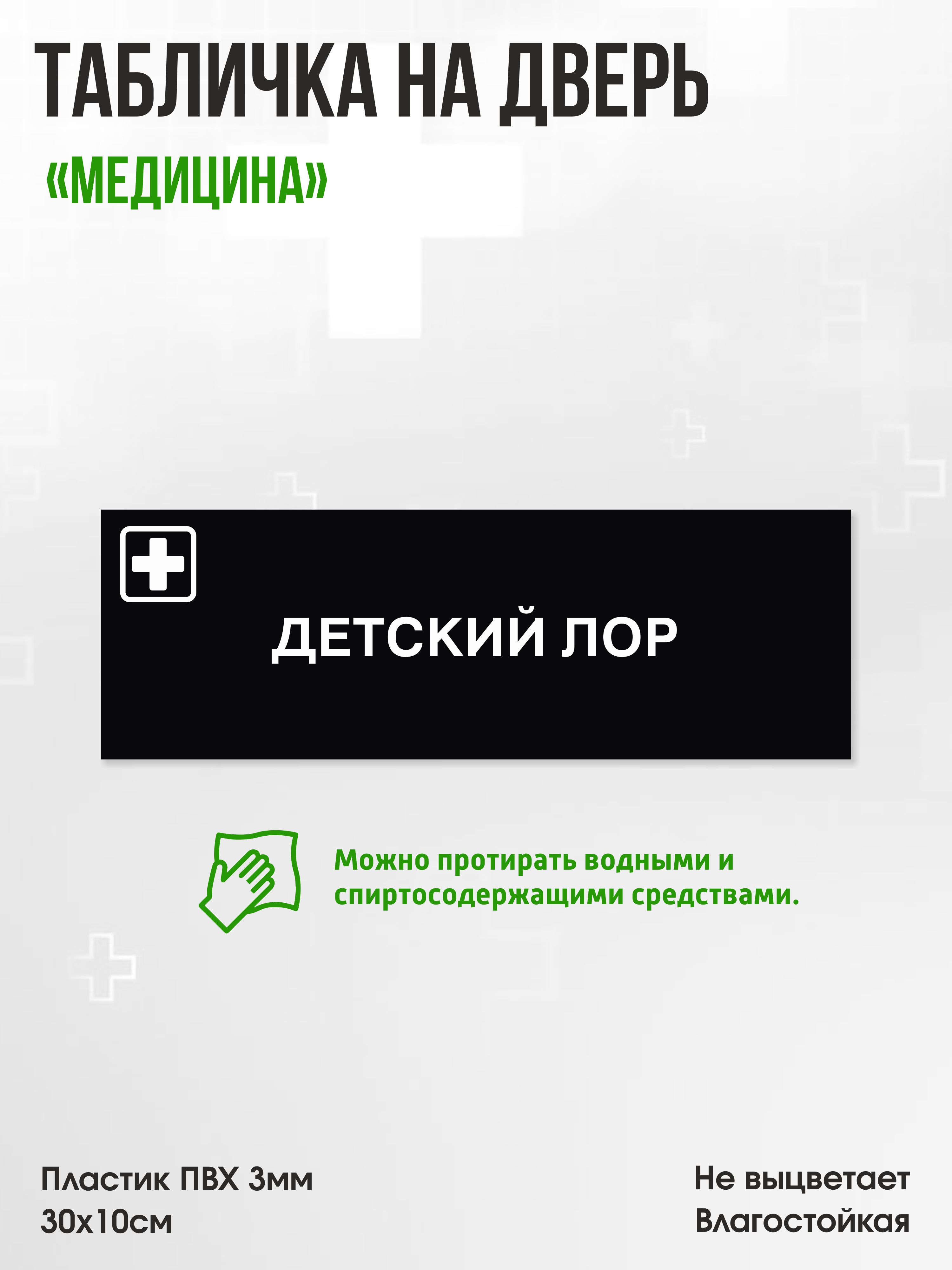 Табличка Детский лор, черная, 30х10см, ПВХ пластик, на дверь, для медицинской клиники или больницы