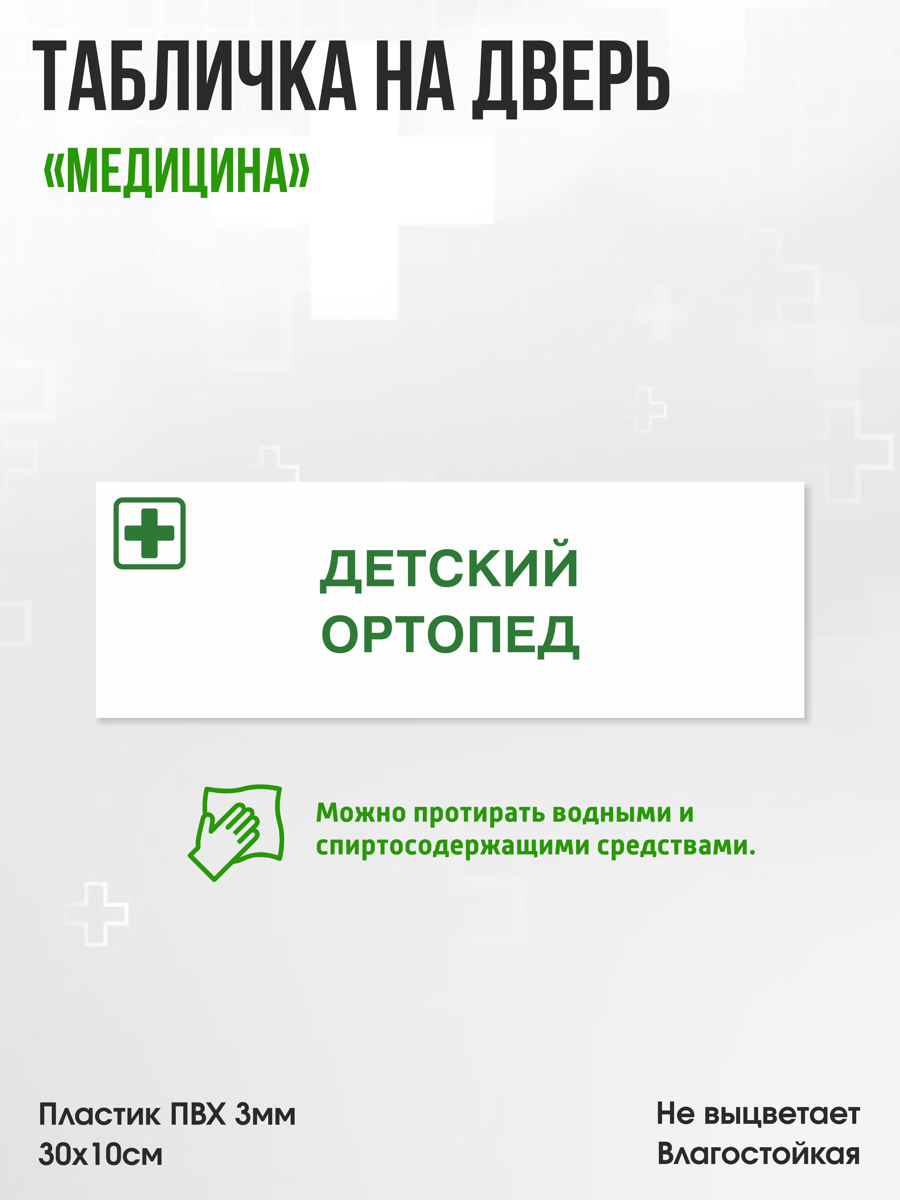 Табличка Детский ортопед, белая, 30х10см, ПВХ пластик, на дверь, для медицинской клиники или больницы