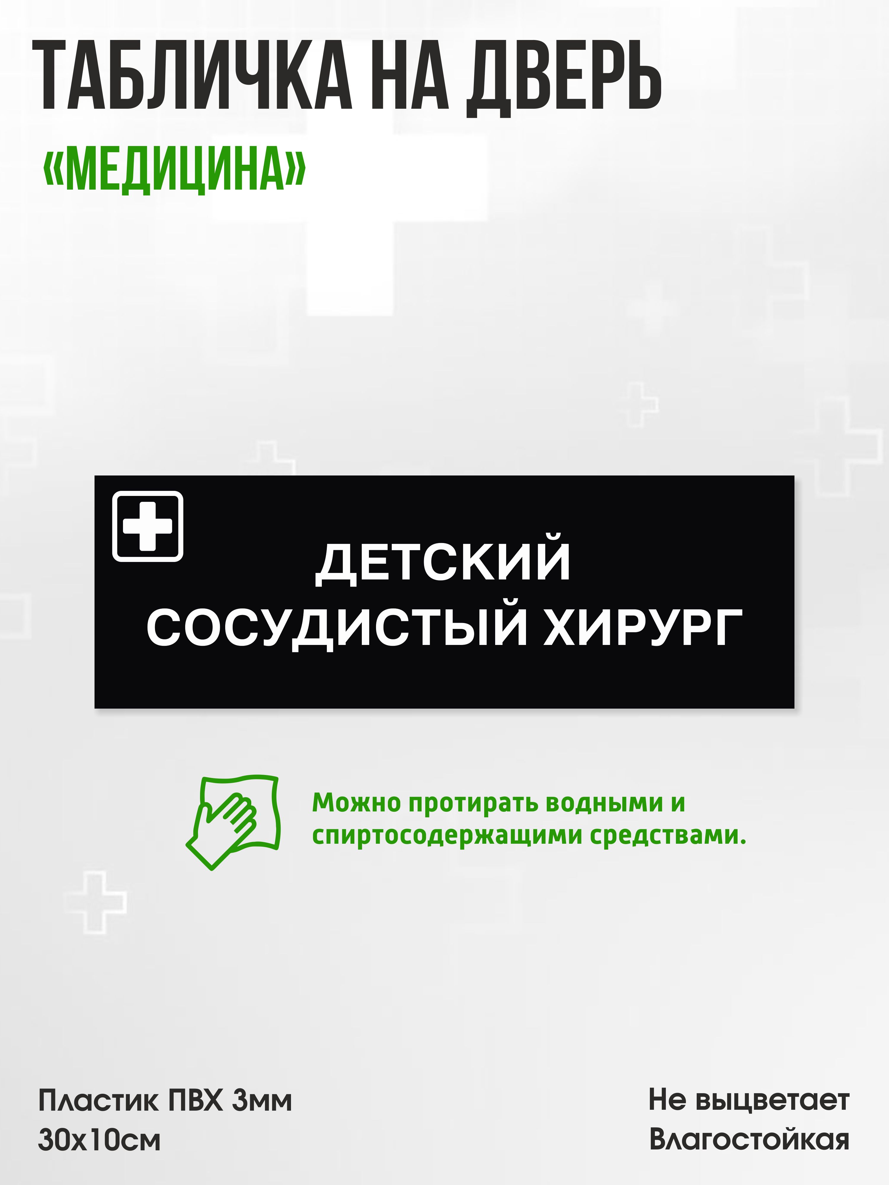 Главная / Каталог продукции / Таблички и декор / Табличка Детский сосудистый хирург, черная, 30х10см, ПВХ пластик, на дверь, для медицинской клиники или больницы