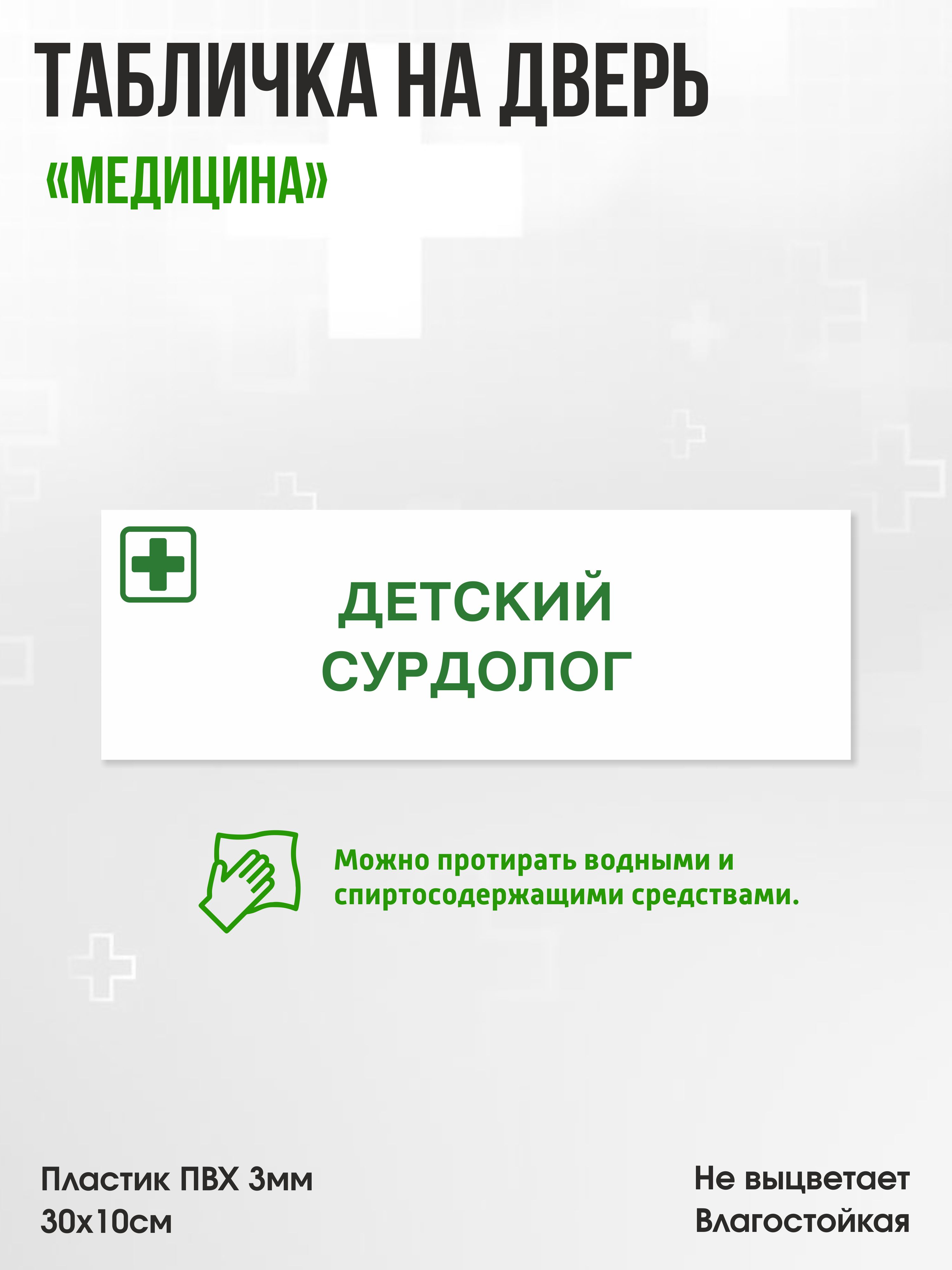 Табличка Детский сурдолог, белая, 30х10см, ПВХ пластик, на дверь, для медицинской клиники или больницы