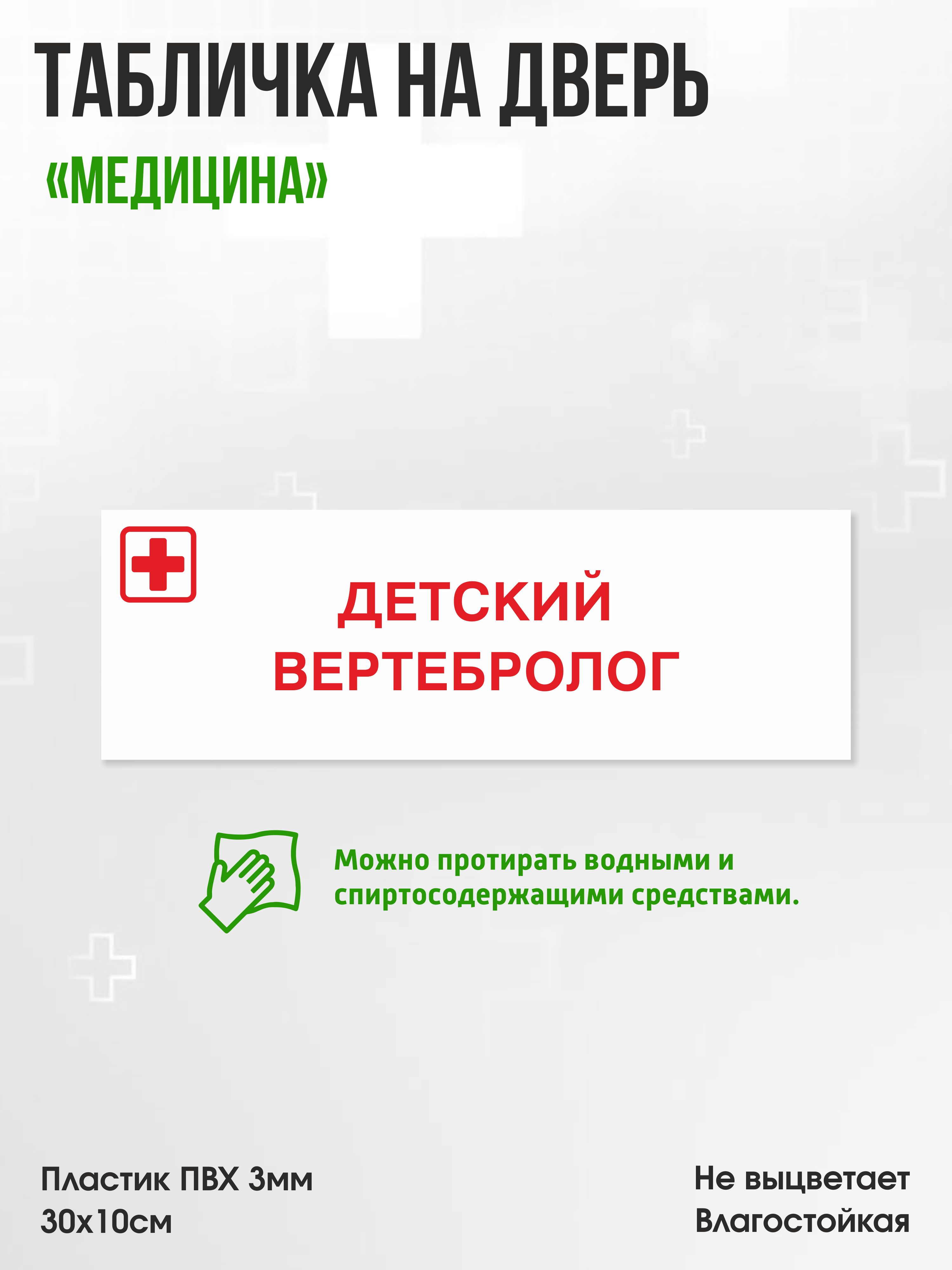 Табличка Детский вертебролог, белая, 30х10см, ПВХ пластик, на дверь, для медицинской клиники или больницы