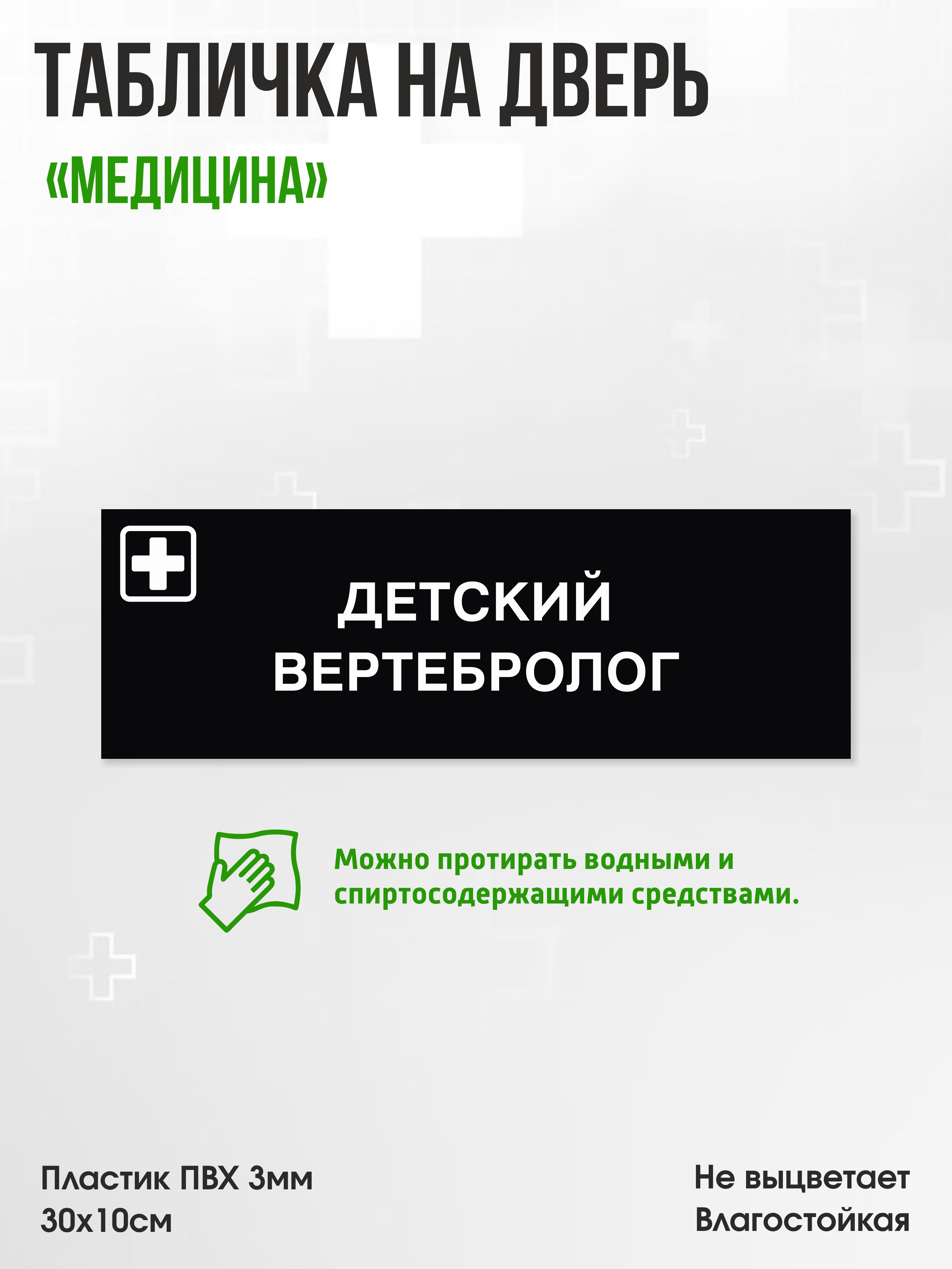 Табличка Детский вертебролог, черная, 30х10см, ПВХ пластик, на дверь, для медицинской клиники или больницы