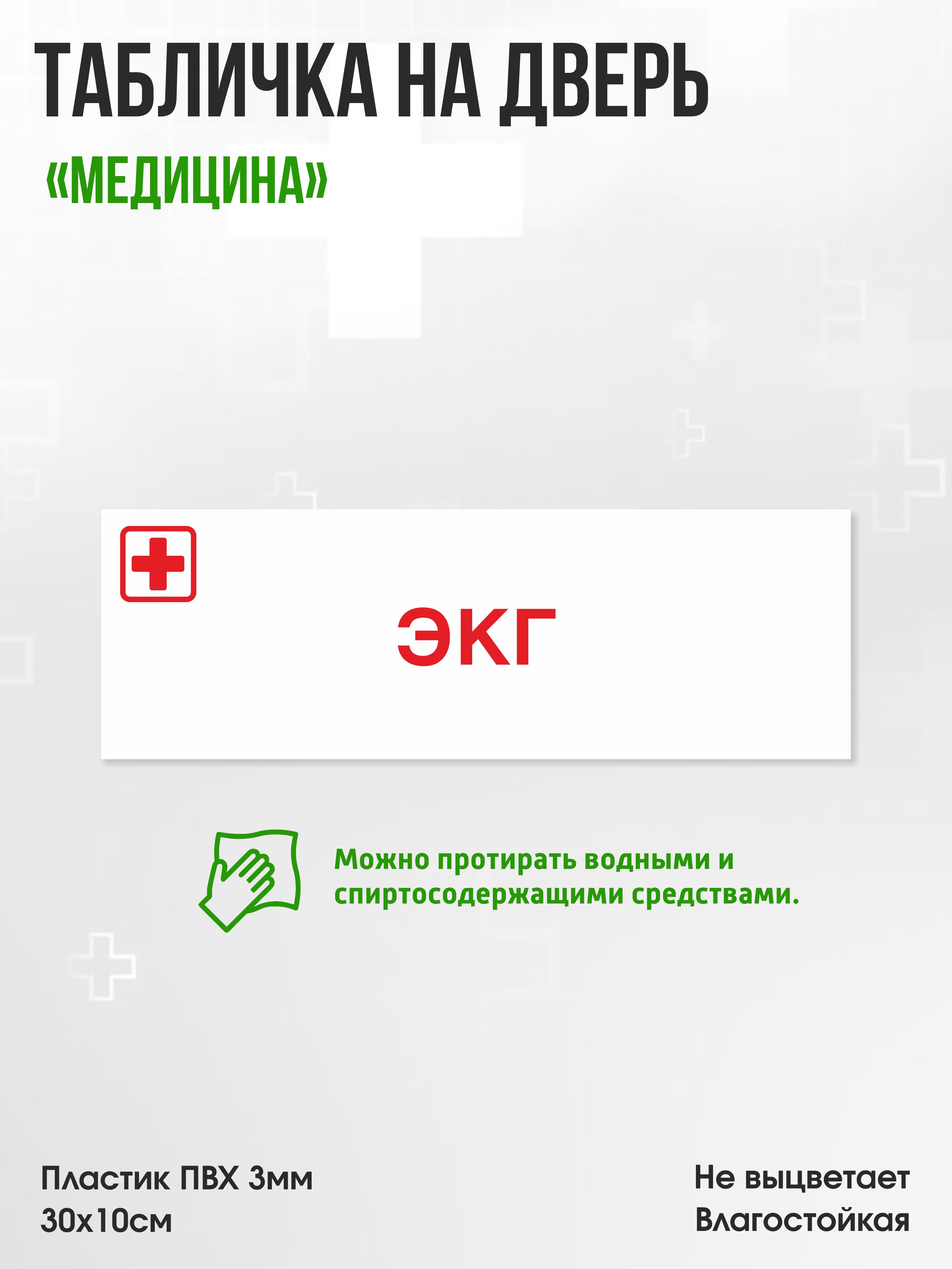 Табличка ЭКГ, белая, 30х10см, ПВХ пластик, на дверь, для медицинской клиники или больницы