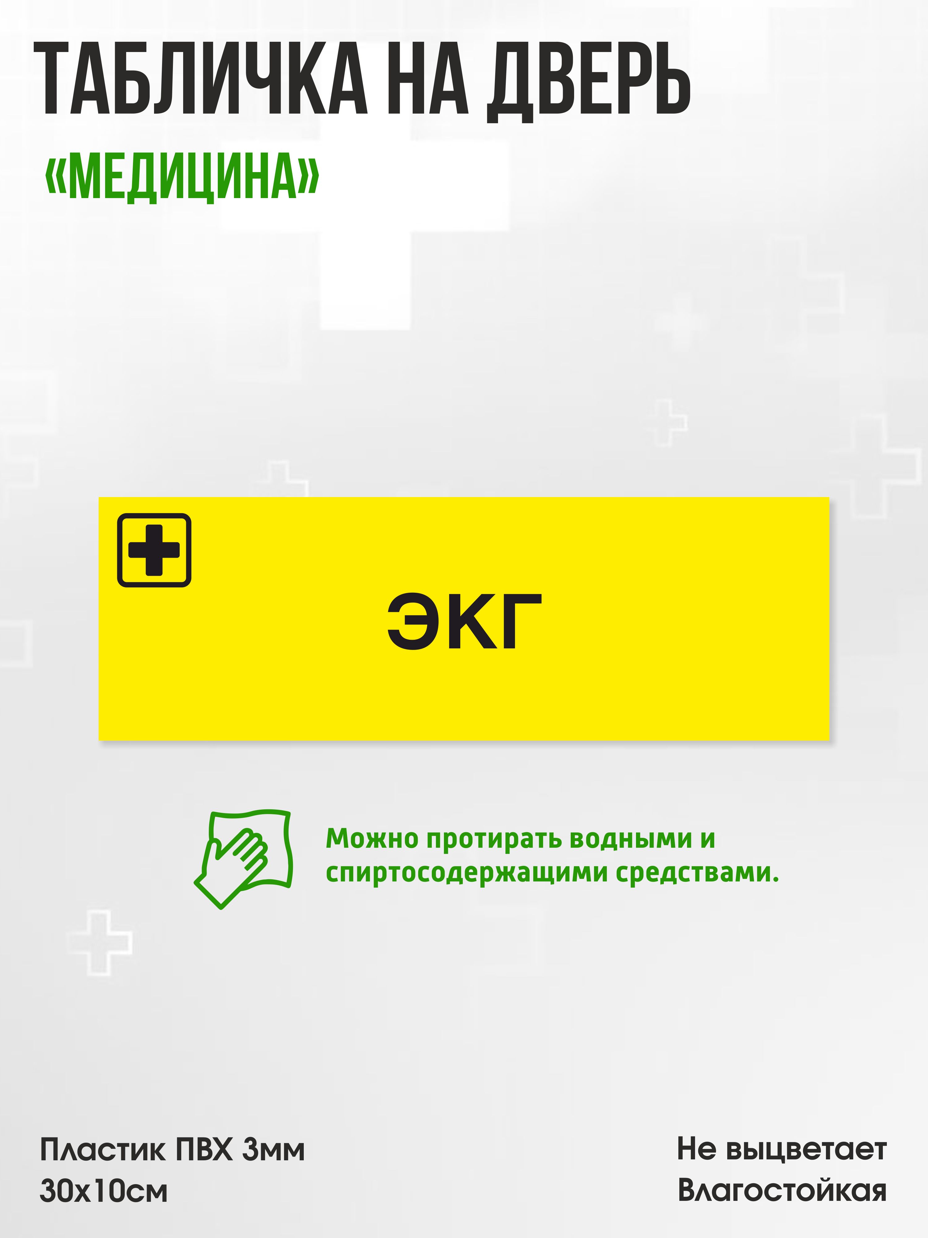 Табличка ЭКГ, жёлтая, 30х10см, ПВХ пластик, на дверь, для медицинской клиники или больницы
