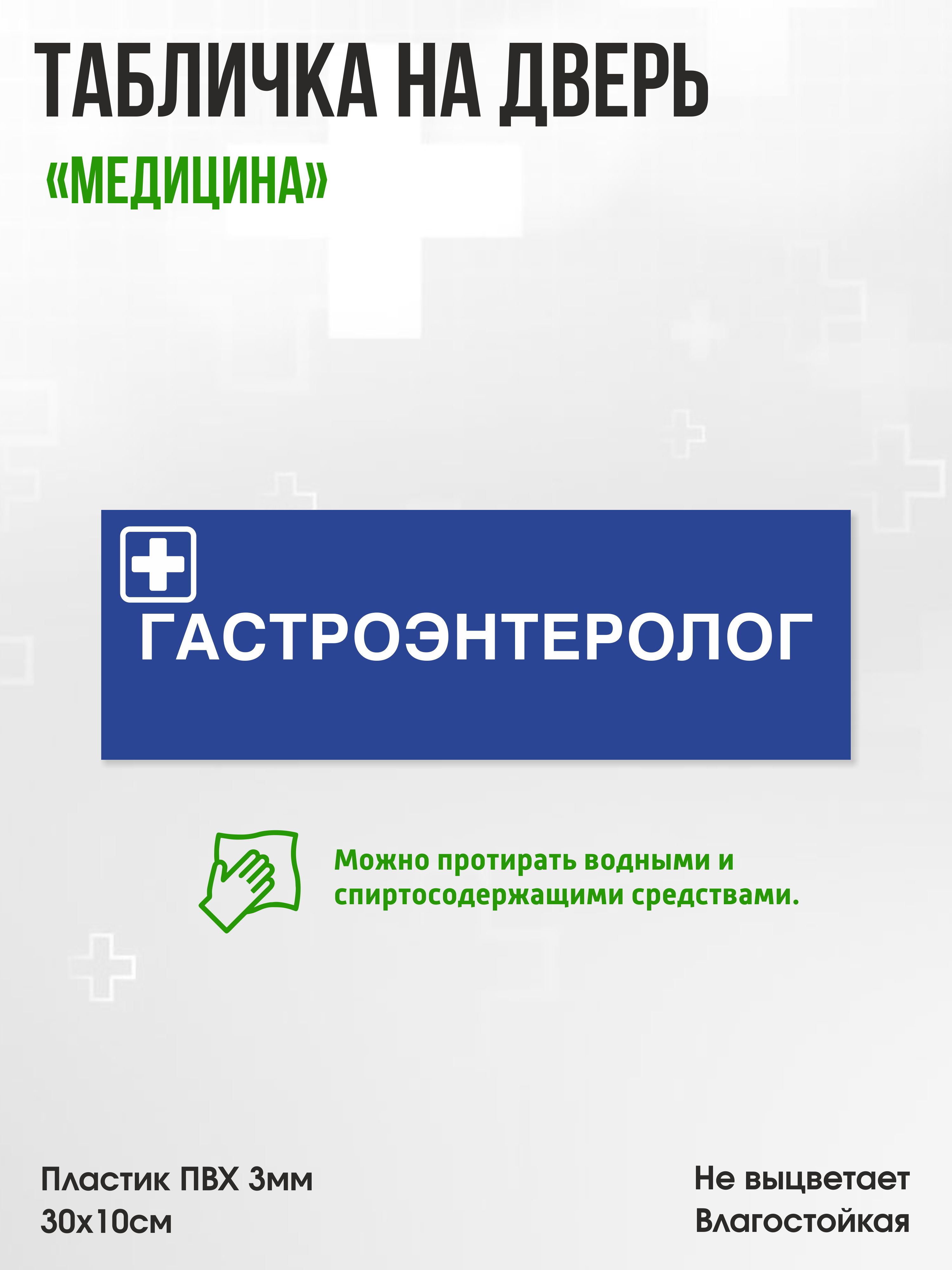 Табличка Гастроэнтеролог, синяя, 30х10см, ПВХ пластик, на дверь, для медицинской клиники или больницы