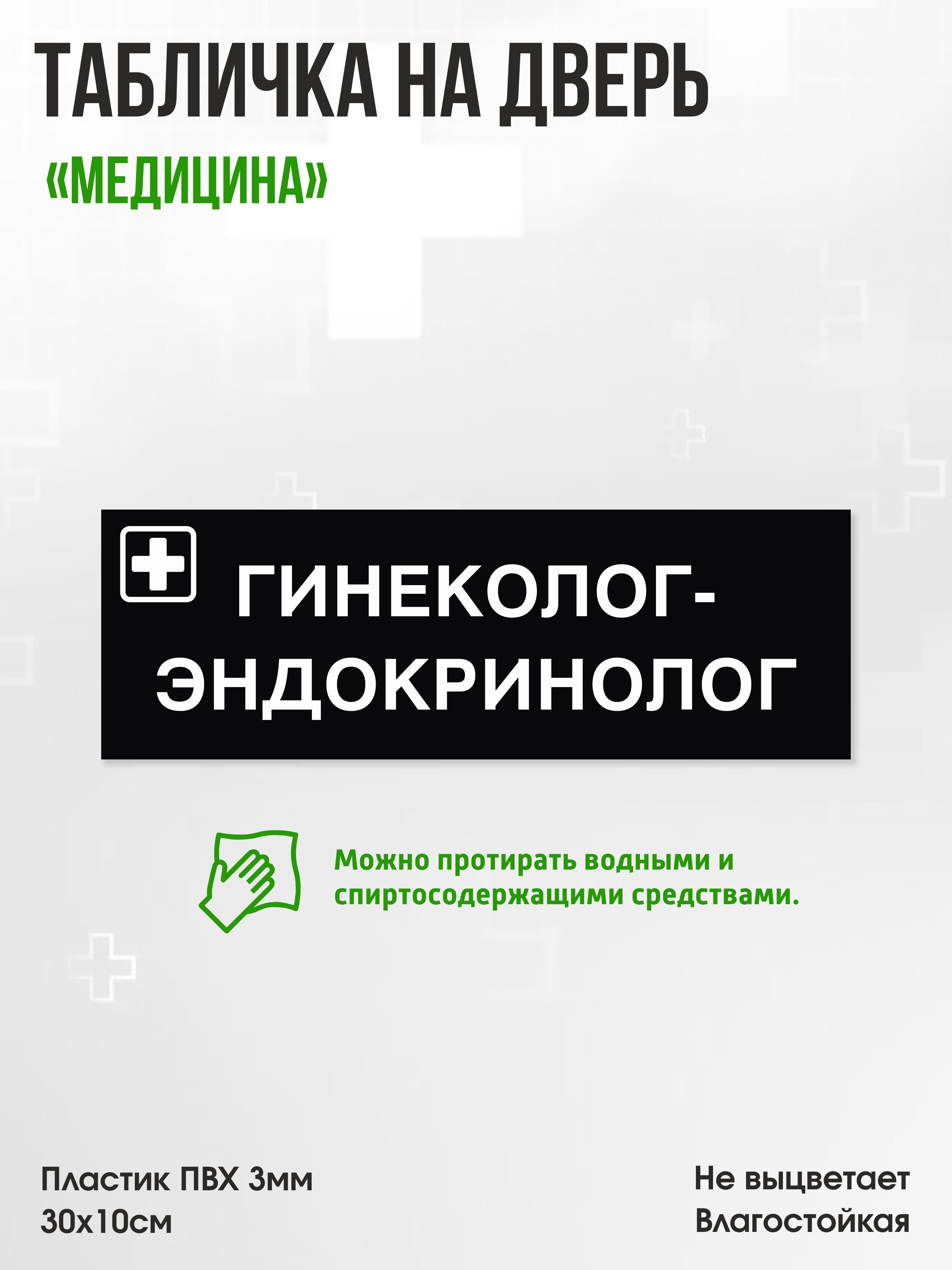 Табличка Гинеколог-эндокринолог, черная, 30х10см, ПВХ пластик, на дверь, для медицинской клиники или больницы