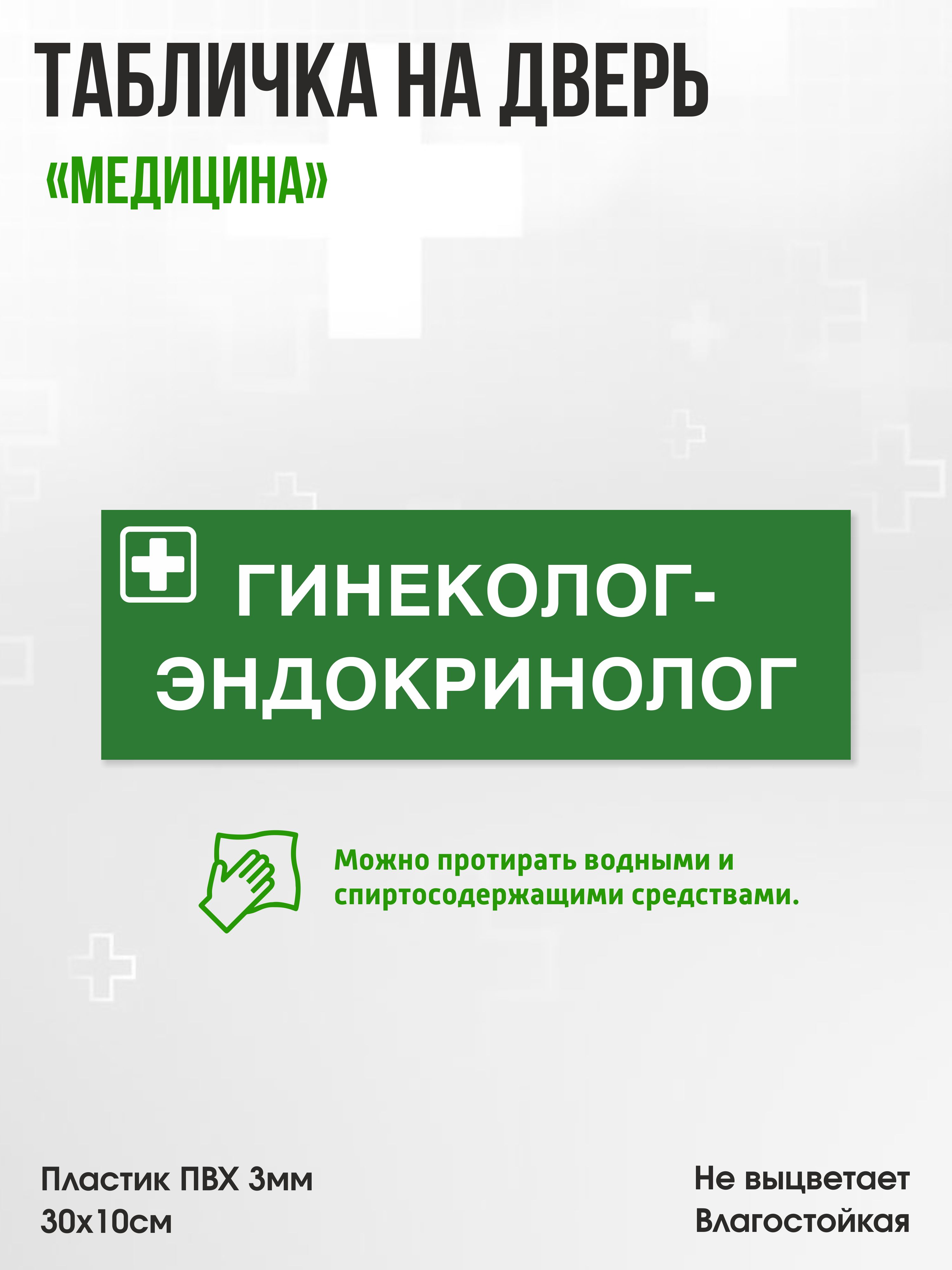 Табличка Гинеколог-эндокринолог, зеленая, 30х10см, ПВХ пластик, на дверь, для медицинской клиники или больницы