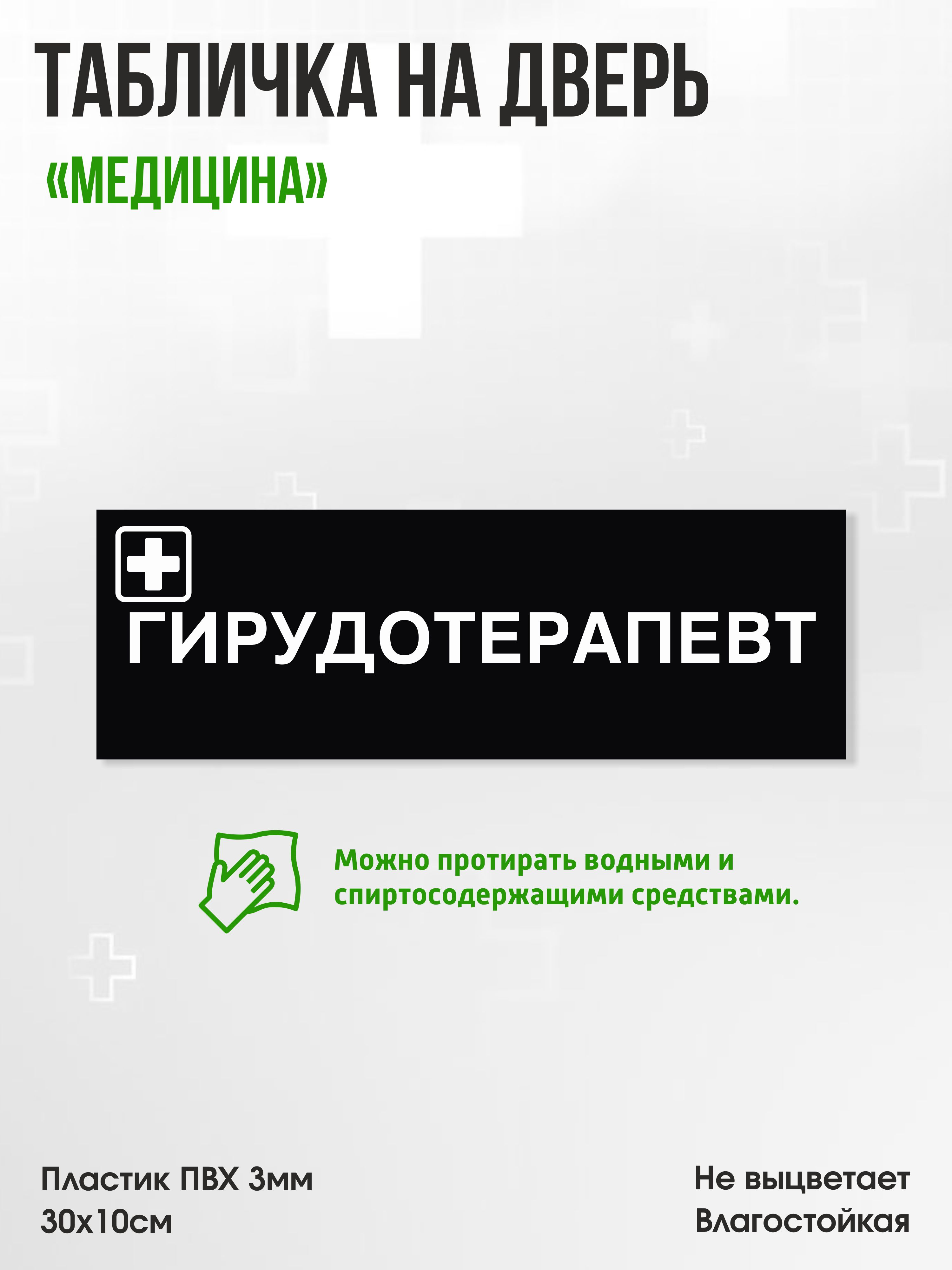 Главная / Каталог продукции / Таблички и декор / Табличка Гирудотерапевт, черная, 30х10см, ПВХ пластик, на дверь, для медицинской клиники или больницы