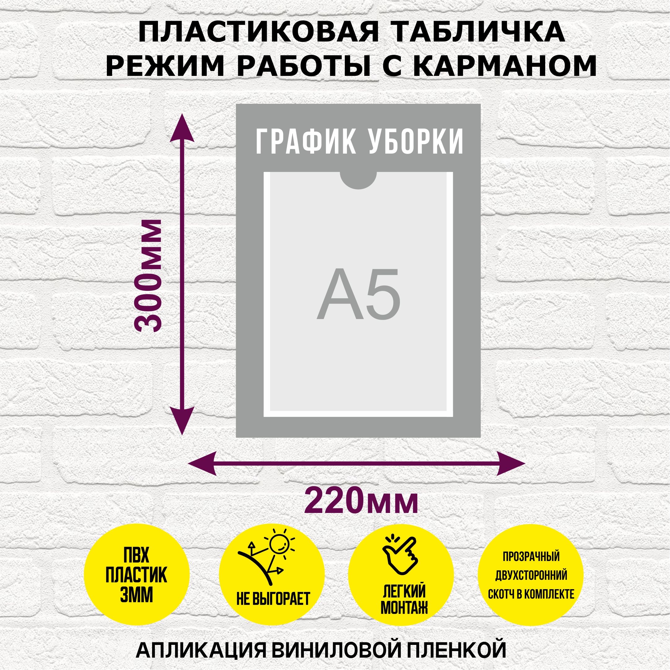 Табличка "График уборки", с карманом A5, ПВХ пластик 3мм, синяя